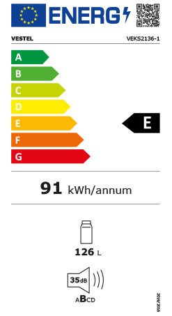 - VESTEL Einbaukühlschrank, VEKS 2136, Energieeffizienzklasse E