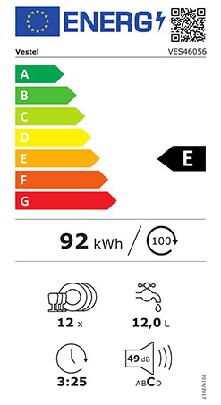- VESTEL Einbau-Geschirrspüler vollintegriert, VES 46056, Energieeffizienzklasse E