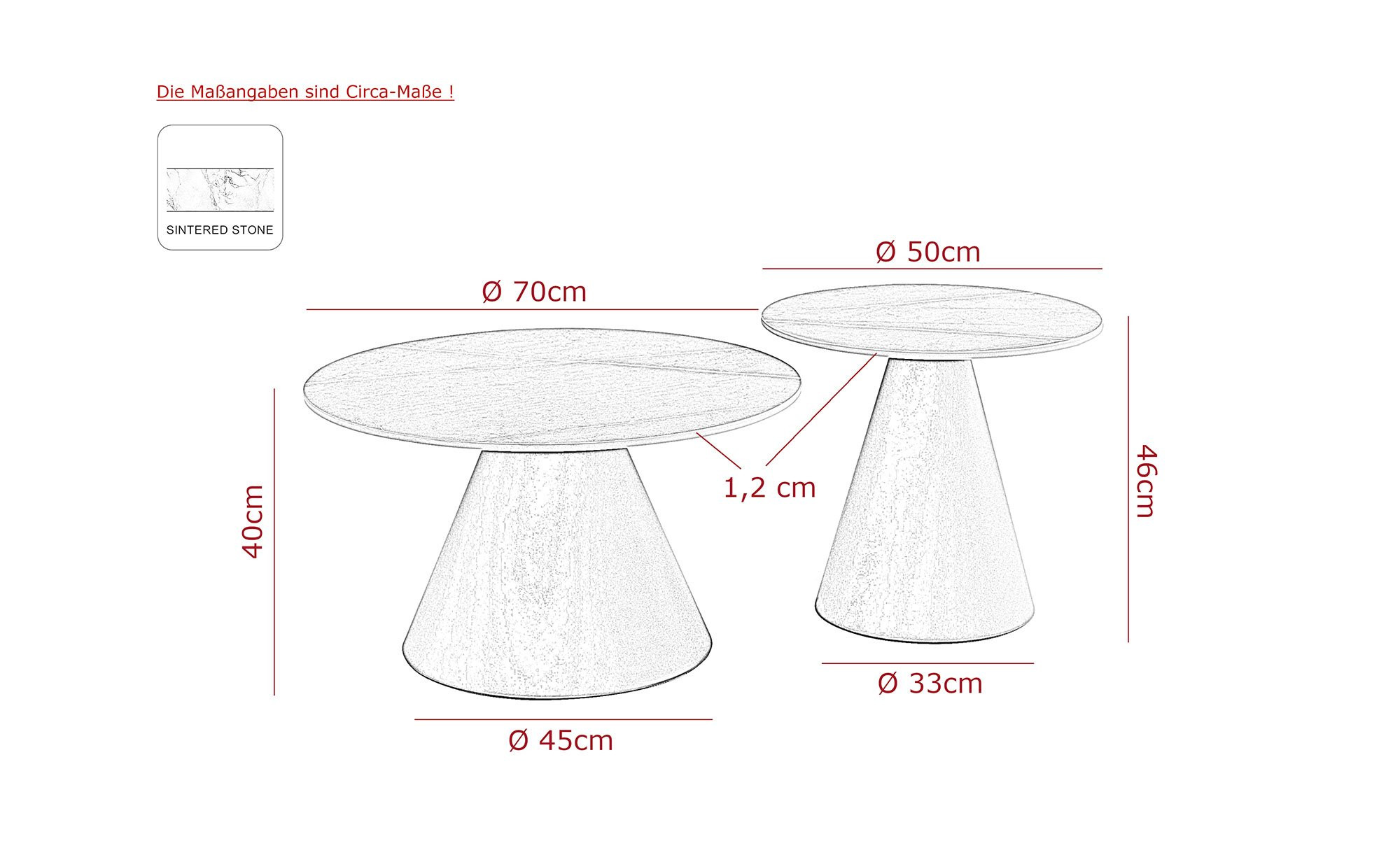 - Tisch 2 Durchmesser ca. 50 cm, Höhe ca. 46 cm