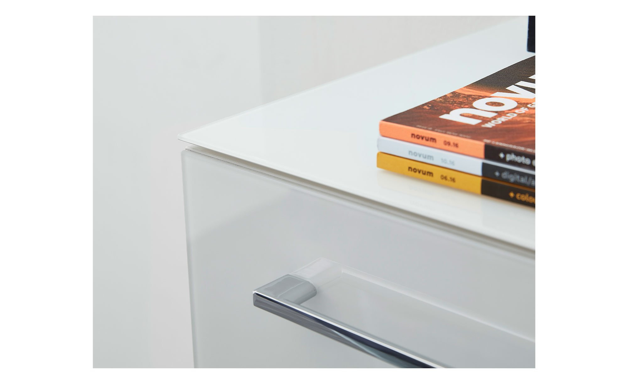 - Oberfläche Front: Weißglas / Einscheibensicherheitsglas
