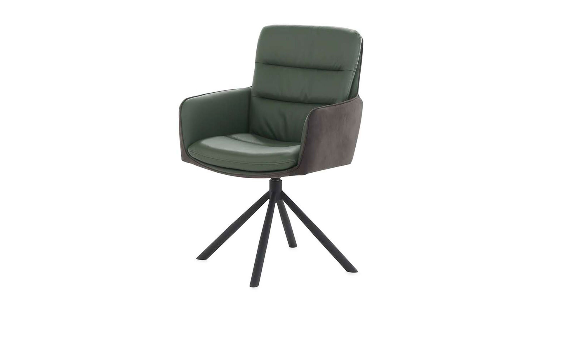 Der Armlehnenstuhl Arco verbindet modernes Wohndesign mit hohem Sitzkomfort und wird damit schnell zum stilvollen Highlight in Ihrem Ess- oder Wohnbereich. Die komfortable Sitzschale des ca. 58 x 89 x 65 cm großen Stuhls überzeugt durch einen hochwertigen Materialmix: Während die Vorderseite mit grün gefärbtem Echtleder ein edles Erscheinungsbild schafft, sorgt der Rücken mit einem Stoffbezug aus 100 % Polyester in Vintage Anthrazit für einen harmonischen Kontrast. So entsteht eine besondere Kombination aus Eleganz, Wohnlichkeit und langlebiger Qualität.