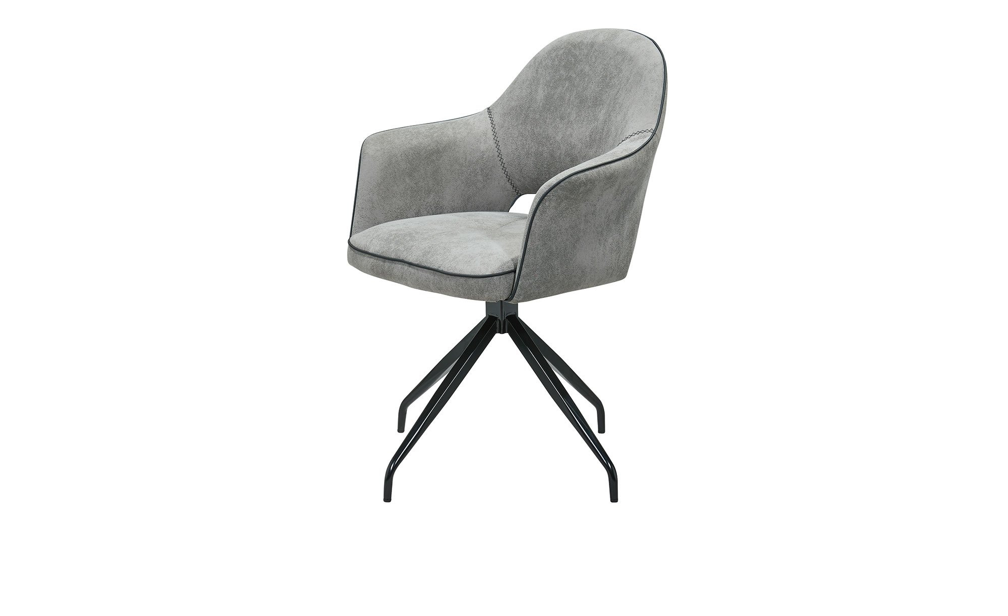 Bezogen ist der moderne Artikel mit einem grauen Bezug aus Mikrofaser. Der integrierte Keder bringt das gewisse Etwas ins Erscheinungsbild. Auch das pulverbeschichtete Metallgestell samt Spinnenfuß in mattem Schwarz fügt sich ideal ein.