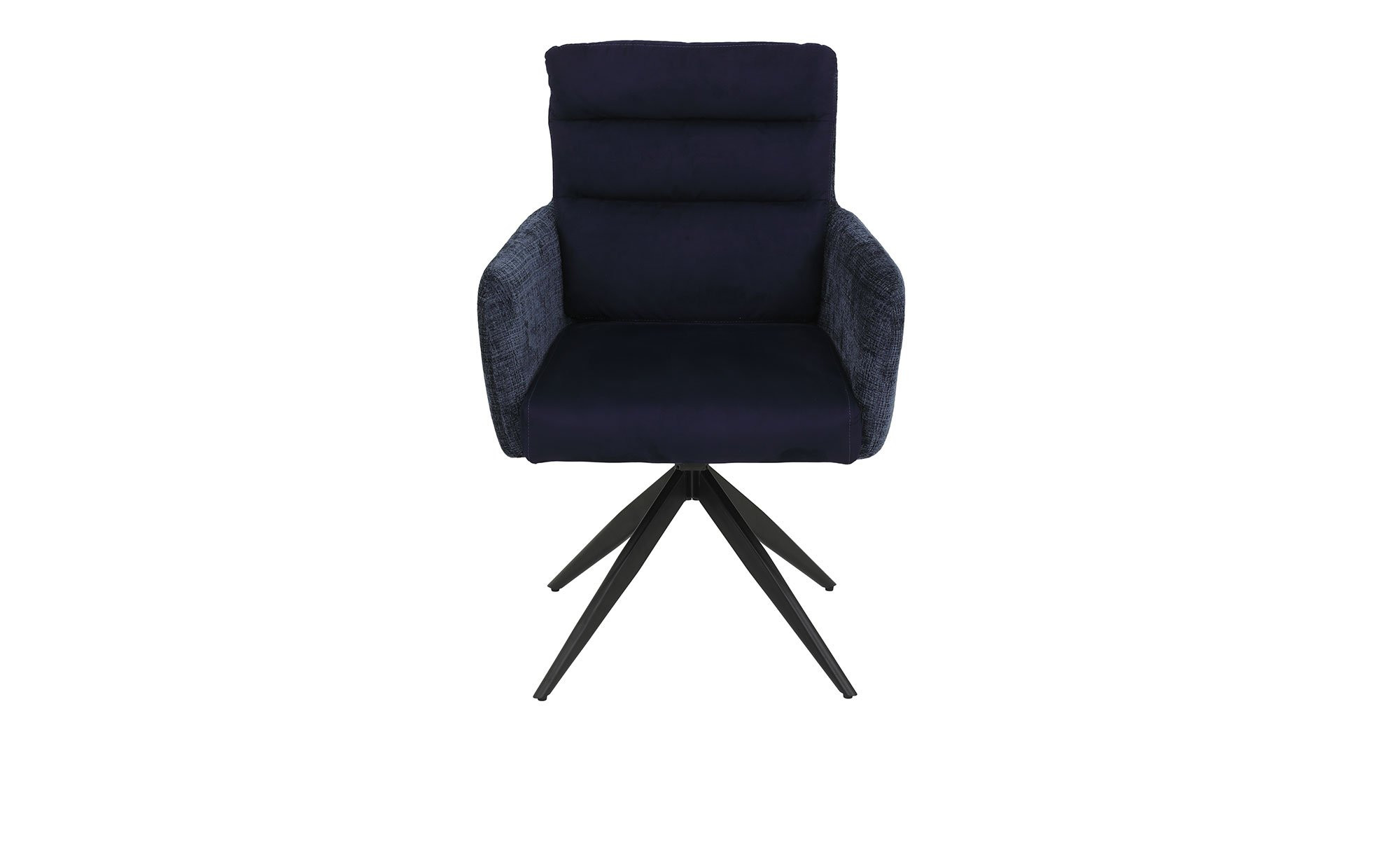 Im Sitz und Rücken des ca. 64 x 92 x 69 cm großen Möbelstücks finden sich zwei unterschiedliche Bezüge. Vorne wurde Mikrofaser integriert, auf der Rückseite ein Mikrofaser Webstoff. Beide Stoffe bestehen aus 100 % Polyester und auch die blaue Farbe eint sie.