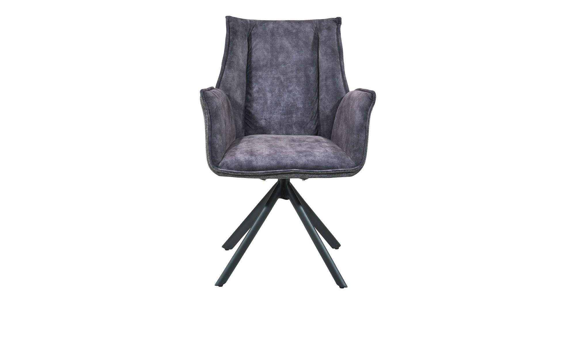 Der Armlehnenstuhl Utrecht überzeugt mit einer gelungenen Kombination aus modernem Design und angenehmem Sitzkomfort. Mit Maßen von ca. 60 x 87,5 x 63 cm bietet er ausreichend Platz zum entspannten Sitzen. Die Vorderseite ist mit hochwertigem Vintage Velvet in Anthrazit bezogen, während der Rücken mit strapazierfähigem Webstoff im gleichen Farbton ausgestattet ist. Das vierfüßige Metallgestell in Schwarz sorgt nicht nur für Stabilität, sondern rundet das stilvolle Gesamtbild harmonisch ab.