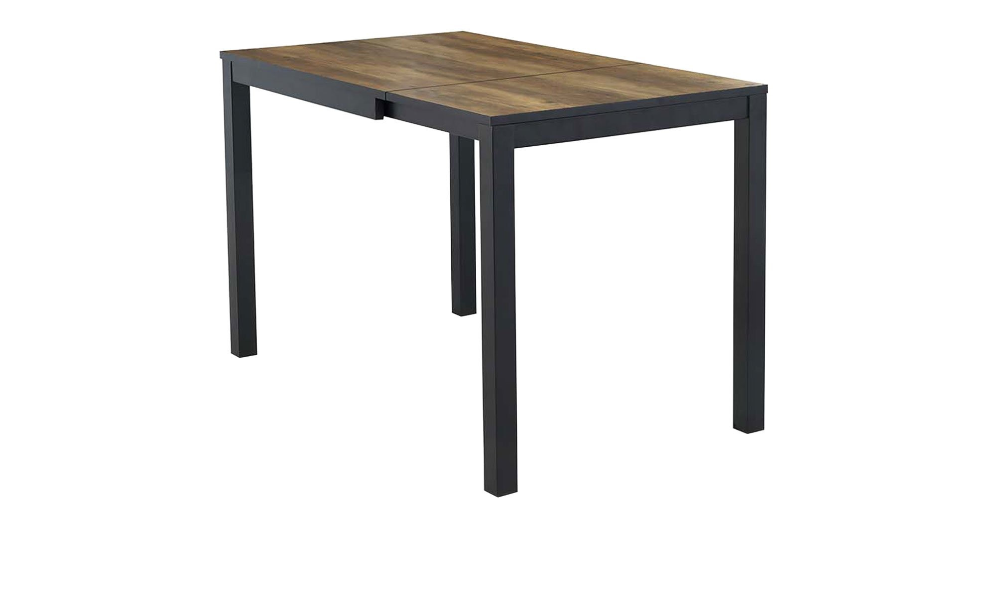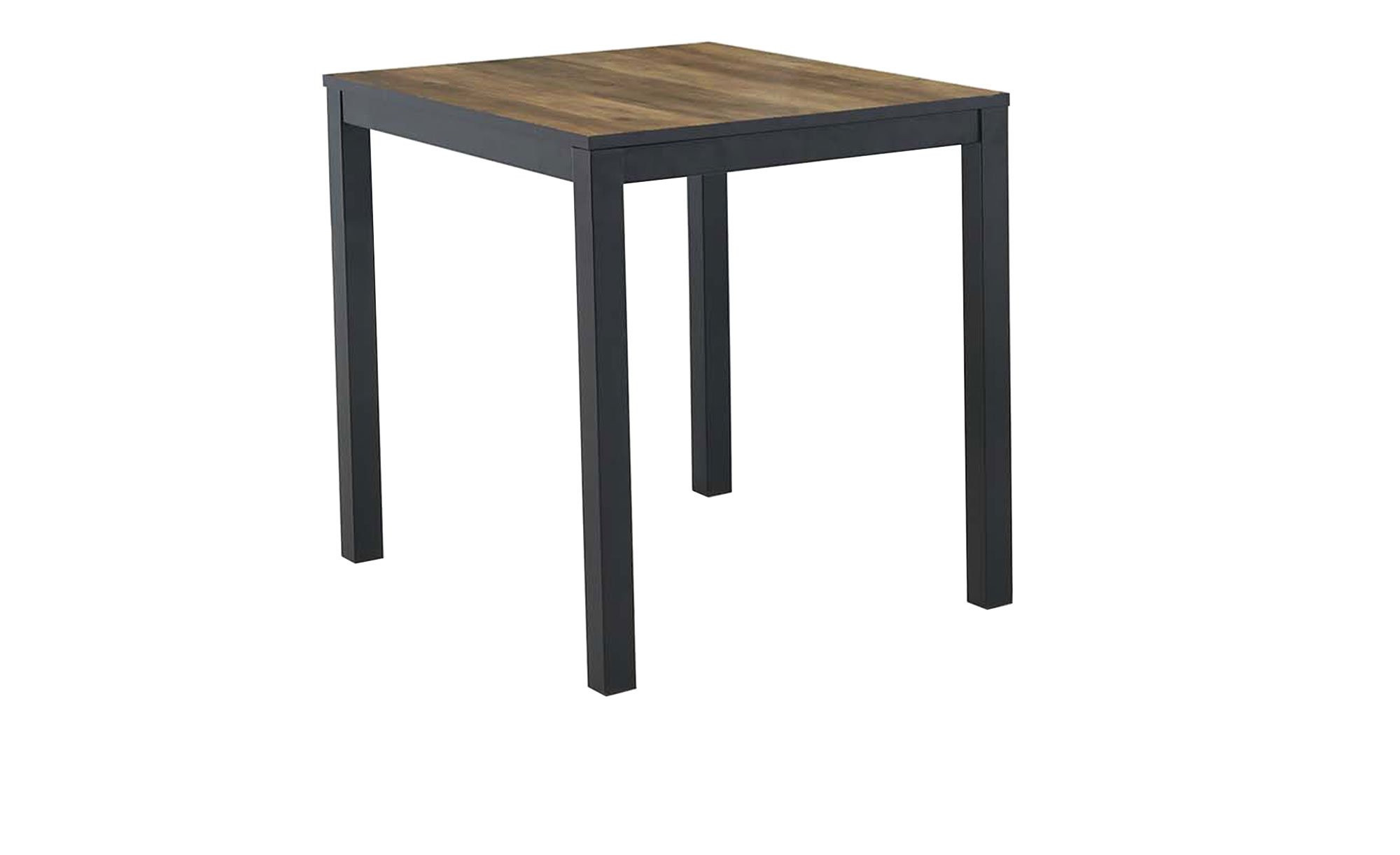 Die rechteckige Platte des ca. 80 x 76 x 70 cm großen Möbelstücks besteht aus Holzwerkstoff. Dank eines dunklen Akazie-Dekors springt sie unmittelbar ins Auge. Gemeinsam mit dem vierfüßigen Metallgestell in Schwarz entsteht eine unwiderstehliche Symbiose aus natürlichen und industriellen Einflüssen.