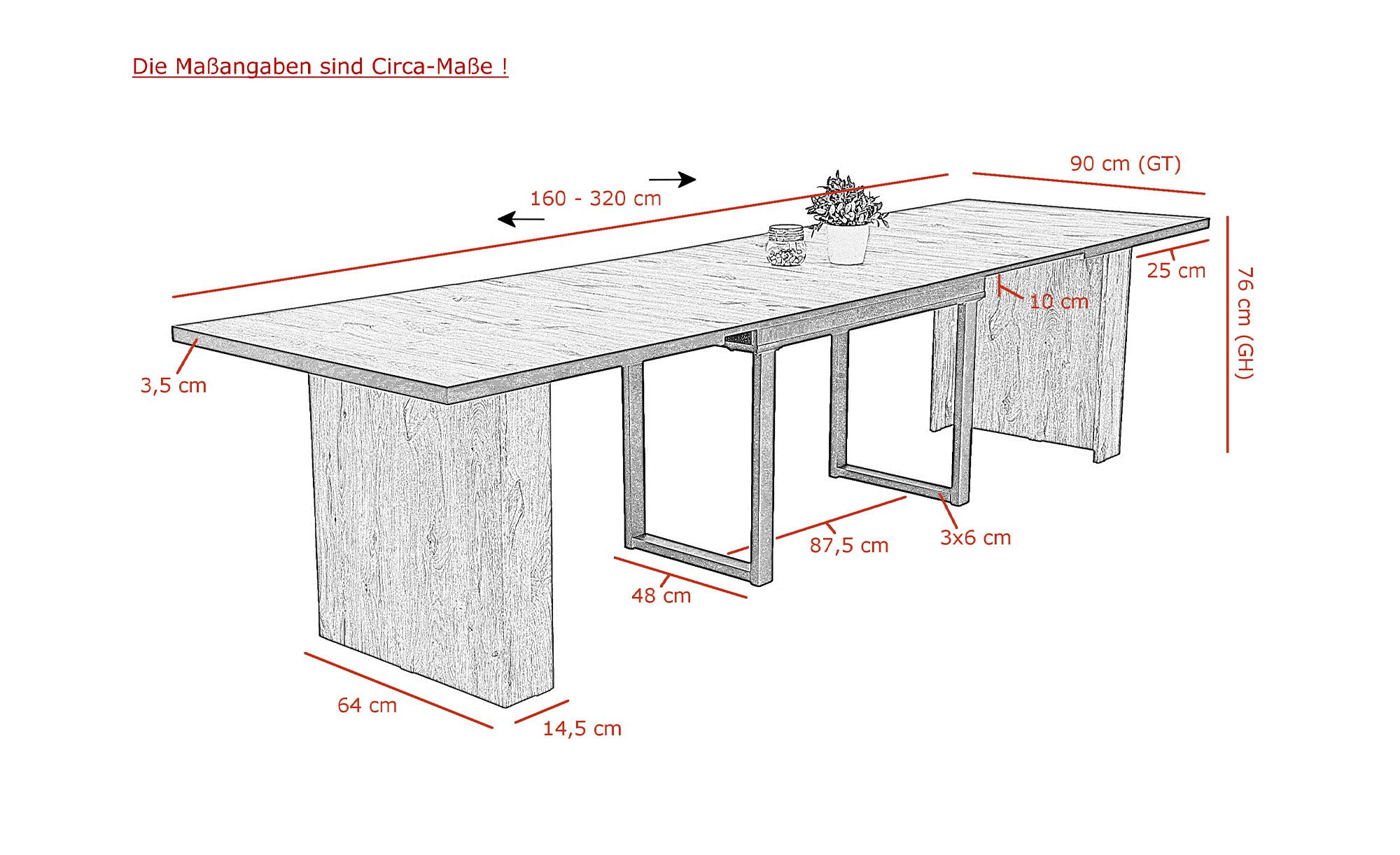 - Maße Tischplatte ausgezogen: ca. 320 cm