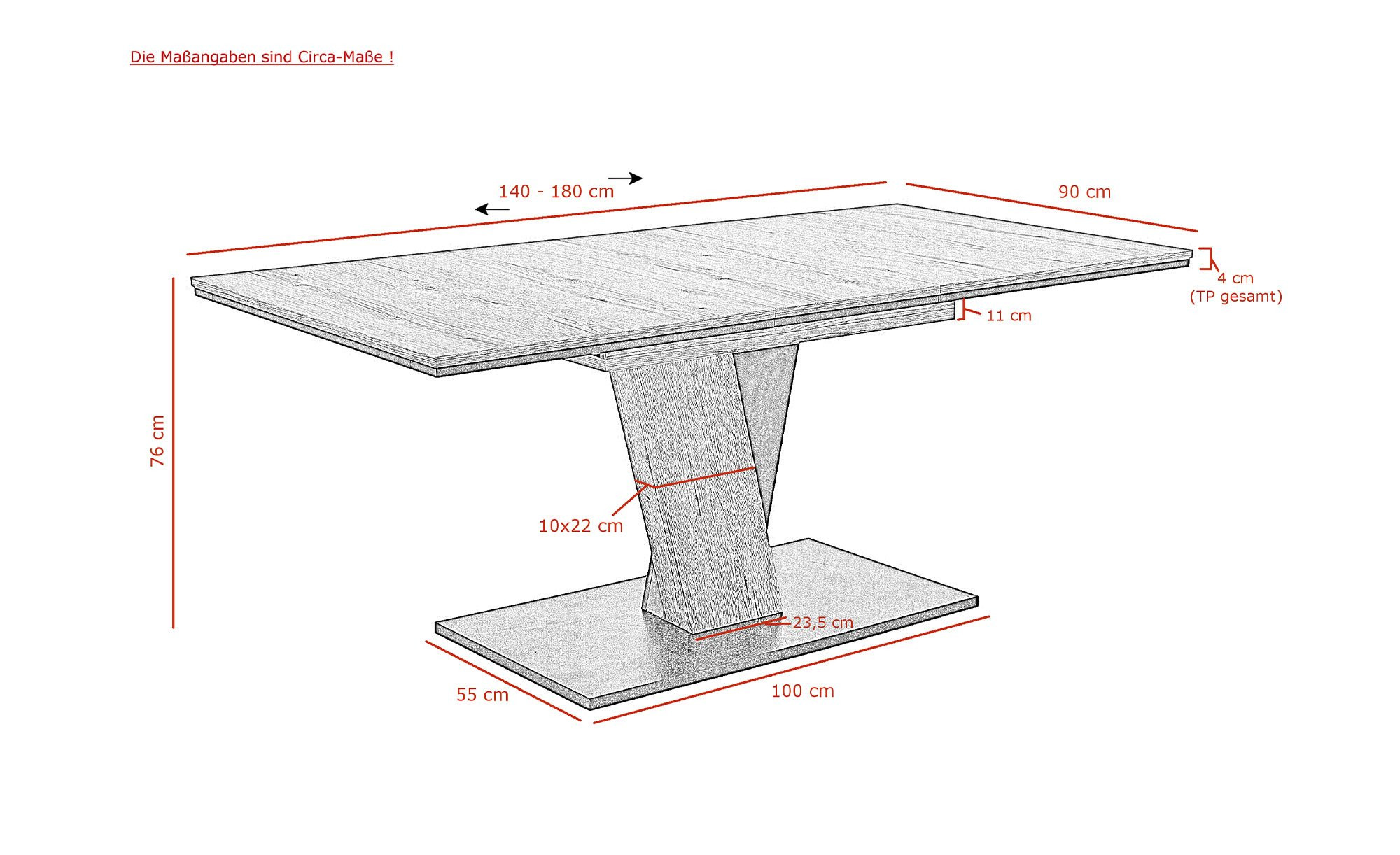 - Maße Tischplatte ausgezogen: ca. 180 cm