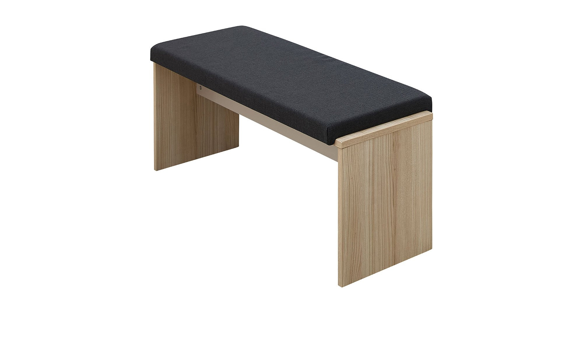 Der Artikel misst ca. 126 x 49 x 40 cm und besteht aus Holzwerkstoff. Mit seiner natürlichen Riva Eiche-Nachbildung versprüht er einen natürlichen Charme. Für einen stilvollen Einfluss sorgt zusätzlich das im Angebot enthaltene Kissen in Anthrazit. Sein Bezug wurde aus 100 % Polyester gefertigt, die bequeme Schaumpolsterung aus Polyurethan.