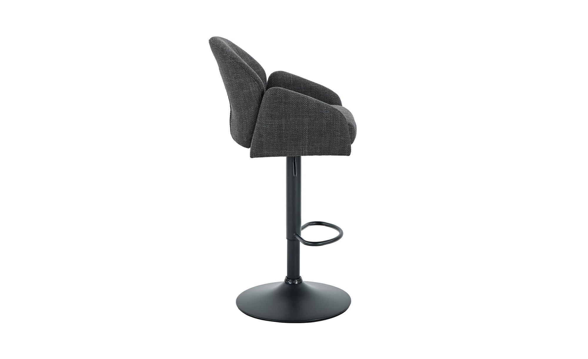 Ein standsicheres Trompetengestell aus pulverbeschichtetem Metall in Schwarz bildet die Basis. Der Sitz ist mit einem farblich abgestimmten Mikrofaser-Webstoff aus 100 % Polyester bezogen und sorgt für ein harmonisches Gesamtbild.