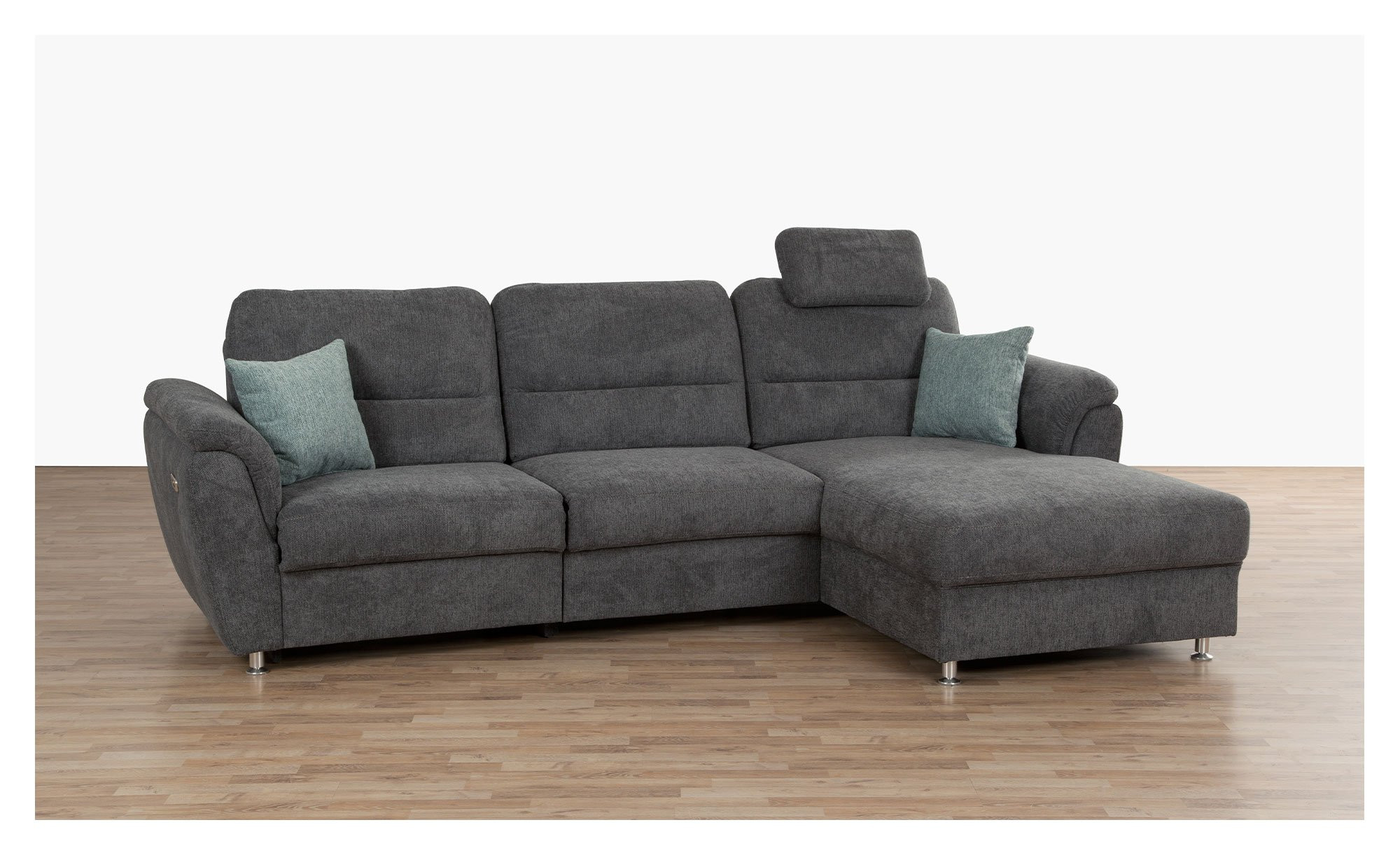 Optional können Sie für die Basis-Wohnlandschaft Dyre eine Kopfstütze bestellen. Eine motorische Sitztiefenverstellung ist gegen Aufpreis erhältlich. Zudem bieten wir eine breite Auswahl an Bezügen und verschiedenen Farbvarianten an.
