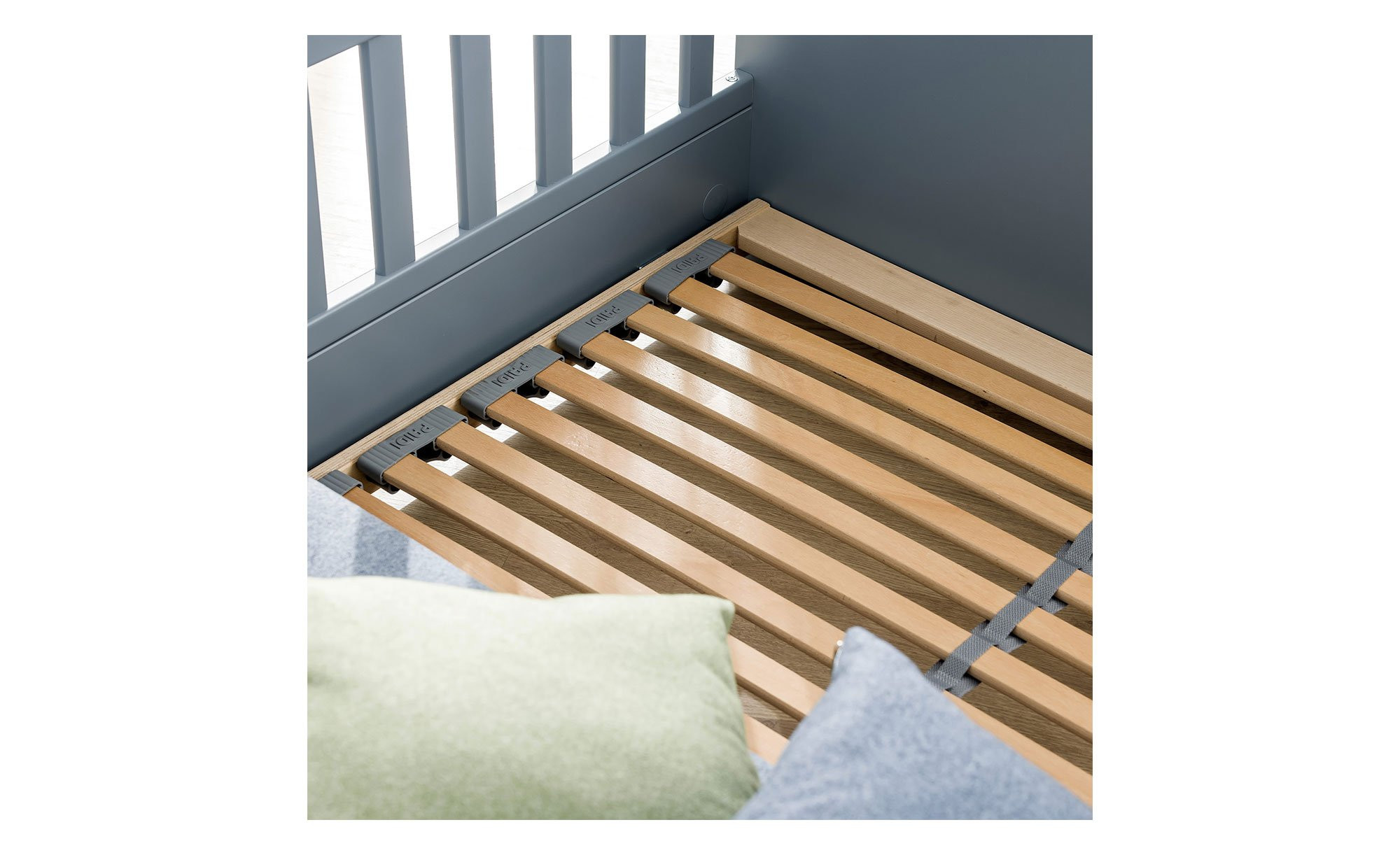 Für den Artikel bieten sich drei Umbauvarianten an. Ohne zusätzliche Umbauteile können Sie ihn von „Little“ zu „Middle“ und schließlich zu „Teens“ anpassen. Die fünfjährige Herstellergarantie rundet das Angebot ab und unterstreicht ebenfalls die Langlebigkeit des Möbelstücks.