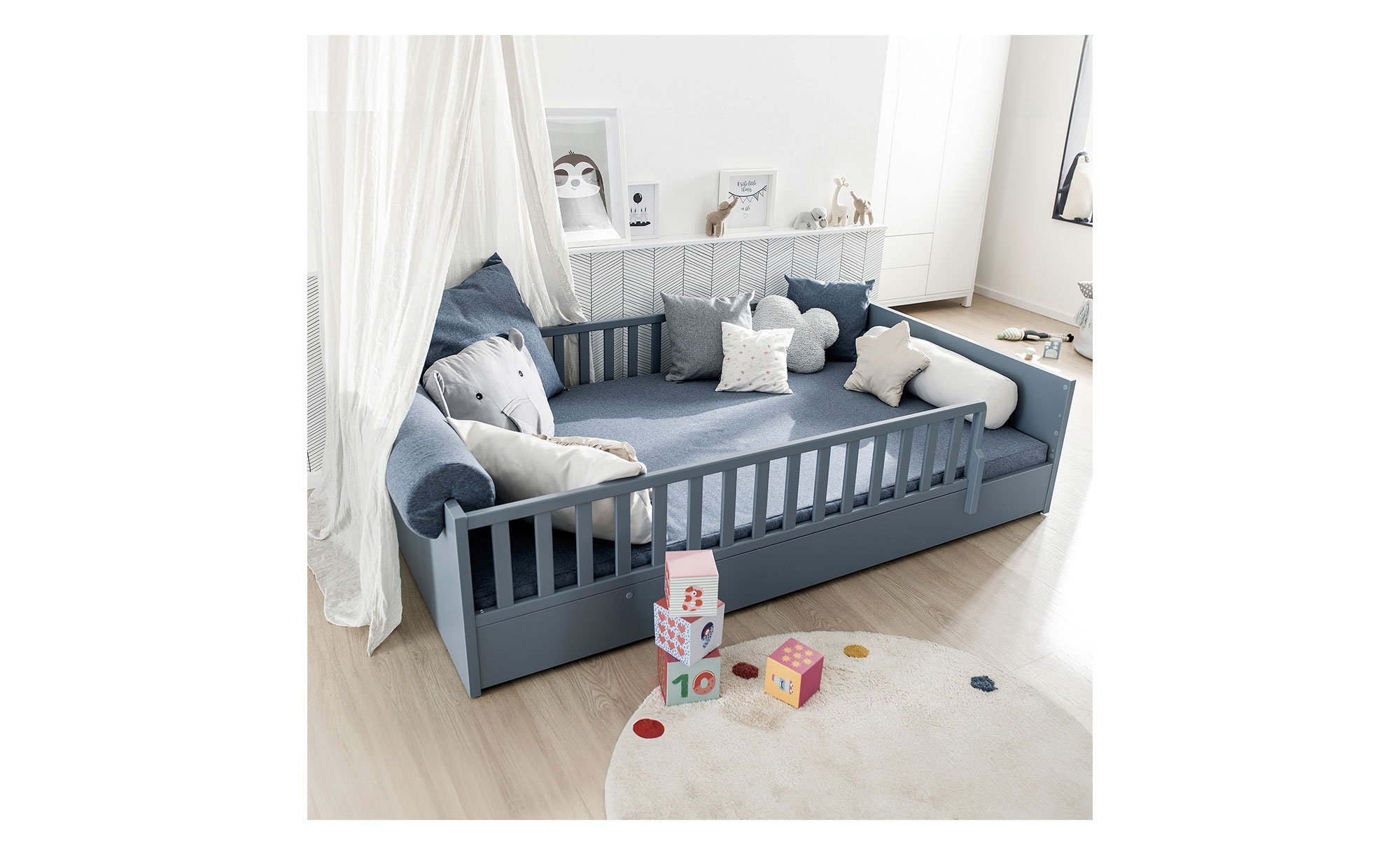 Auf Wunsch bieten wir Ihnen das Bodenbett Little Flo auch in alternativen Farben an. Passendes Zubehör wie ein Rausfallschutz, ein Bettkasten und ein Bettkasten-Unterschiebebett ist optional hinzubestellbar.