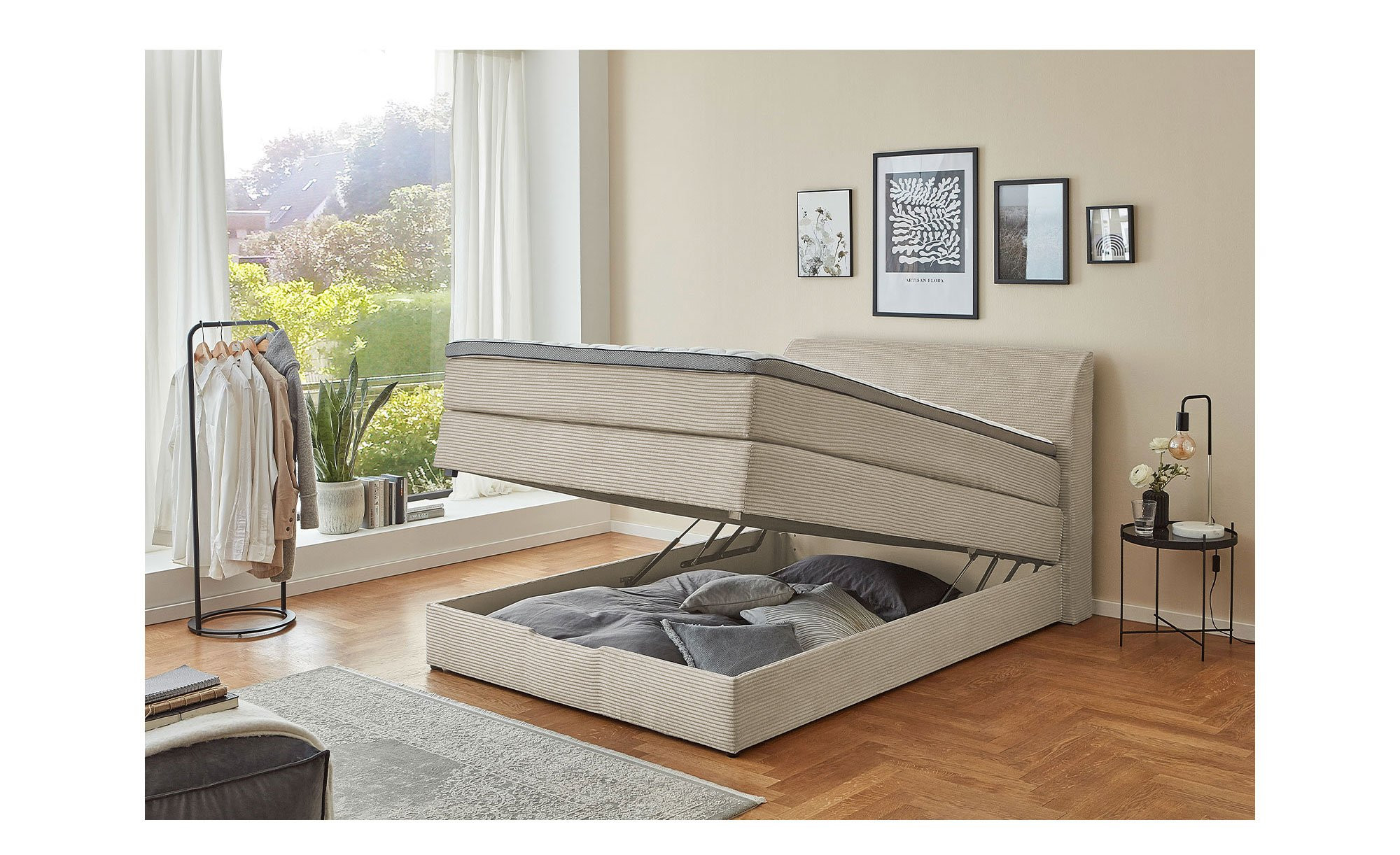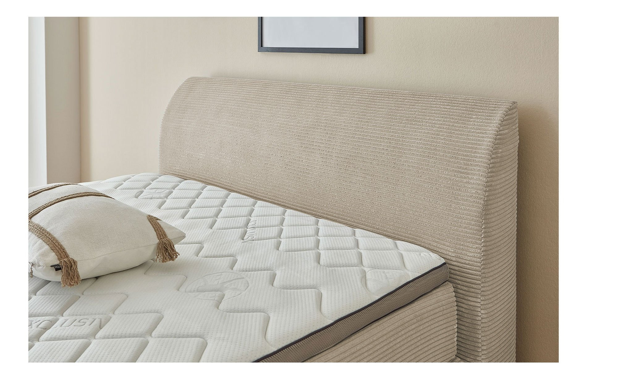 Das Boxspringbett Kawai verwandelt Ihr Schlafzimmer in eine Oase der Entspannung. Mit Maßen von ca. 148 x 106 x 216 cm besticht es durch einen weichen Cordstoff-Bezug in der Farbe Natur, der Gemütlichkeit und modernes Design miteinander verbindet. Integrierter Stauraum sorgt zusätzlich für praktische Funktionalität.