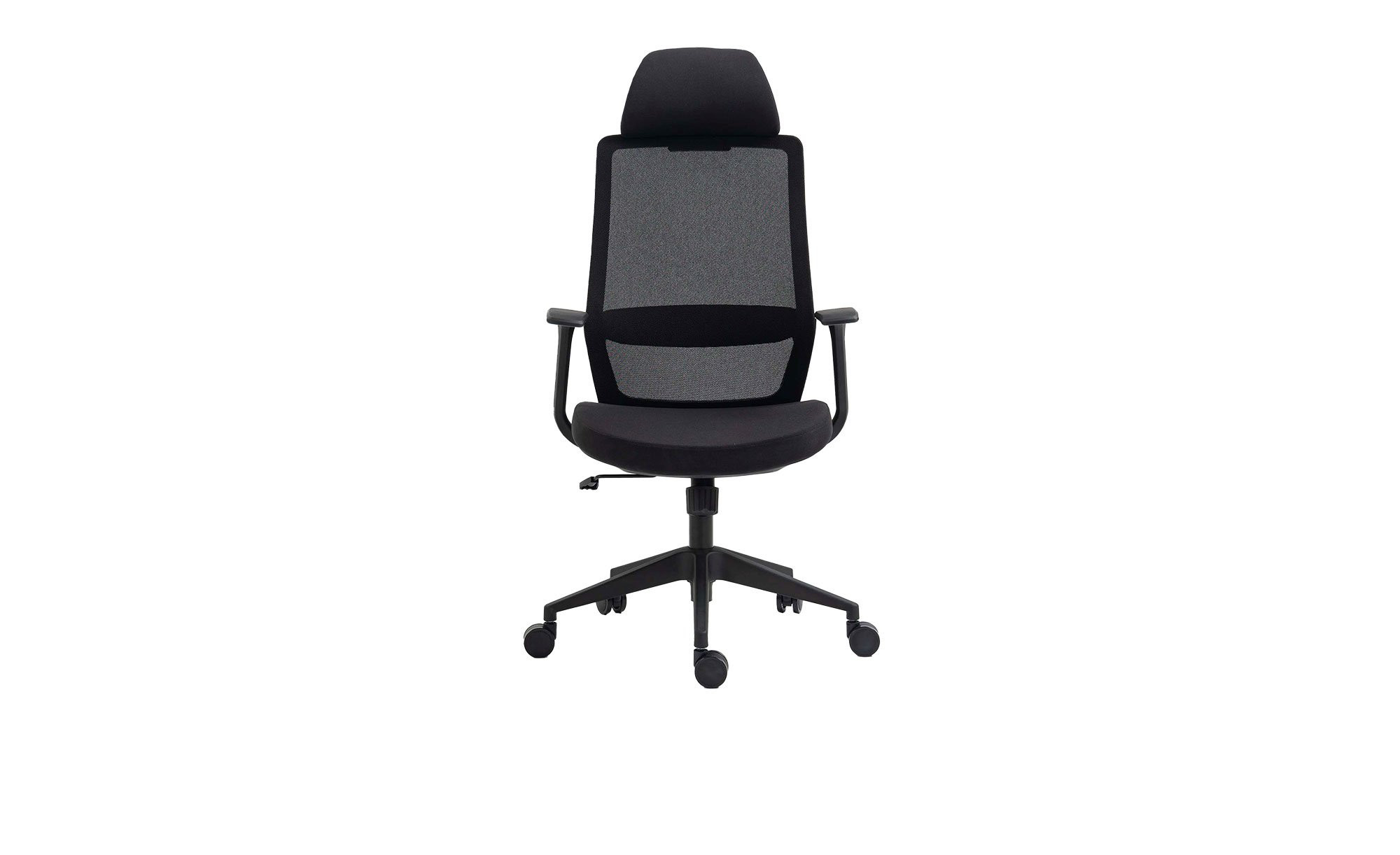 Bezogen mit schwarzem Stoff und einem atmungsaktiven Meshgewebe, macht der ca. 60 x 120 x 62 cm große Artikel eine hervorragende Figur. Sein Gestell ist ebenfalls in Schwarz gehalten und endet in einem stabilen Fußkreuz. Im Sitz erwartet Sie eine bequeme Schaumstoffpolsterung, außerdem wurden eine ergonomisch geformte Rückenlehne und eine verstellbare Kopfstütze integriert. Das Möbelstück ist drehbar und kann stufenlos in der Höhe verstellt werden. Darüber hinaus verfügt es über eine Synchronmechanik und eine Wippfunktion.