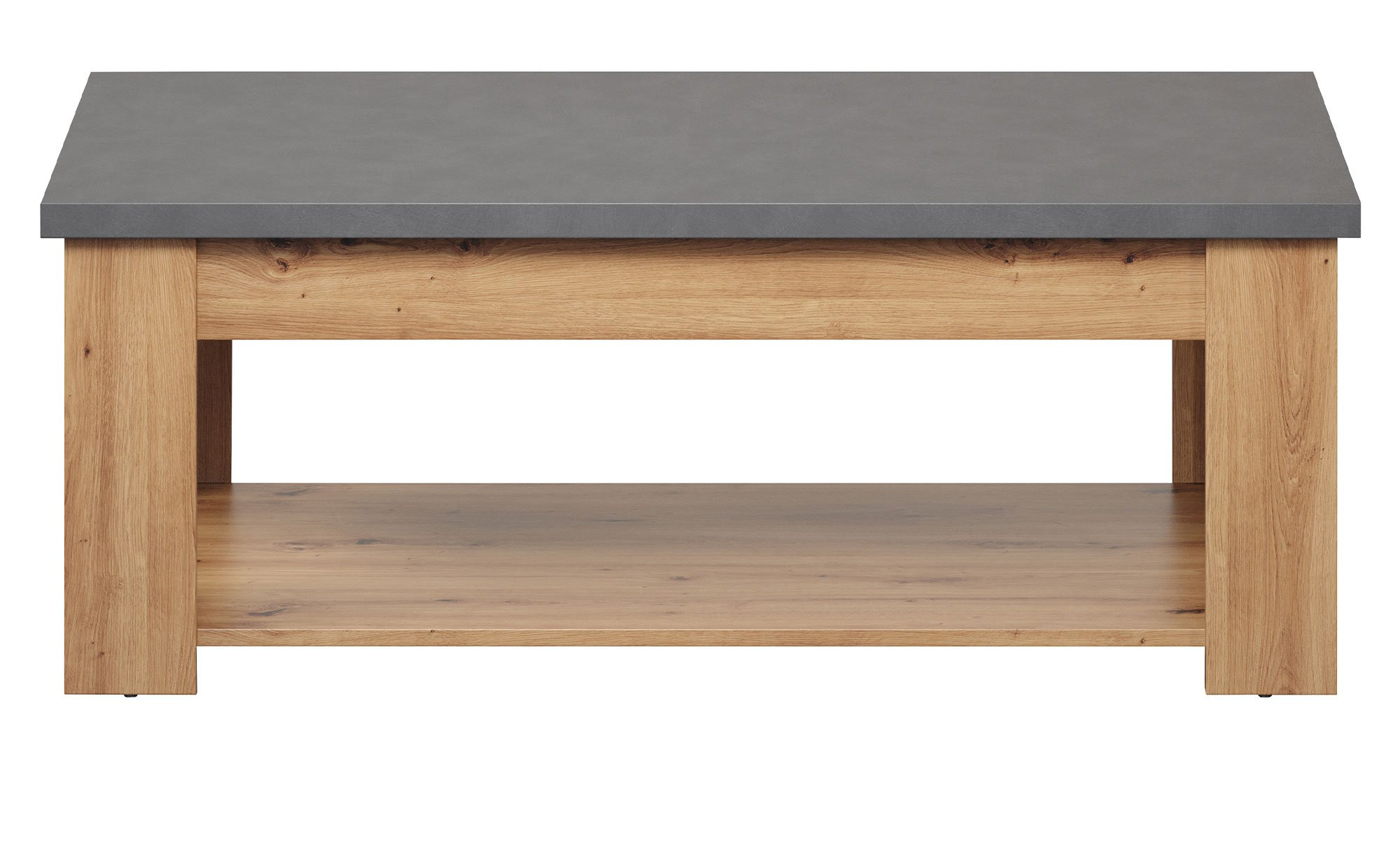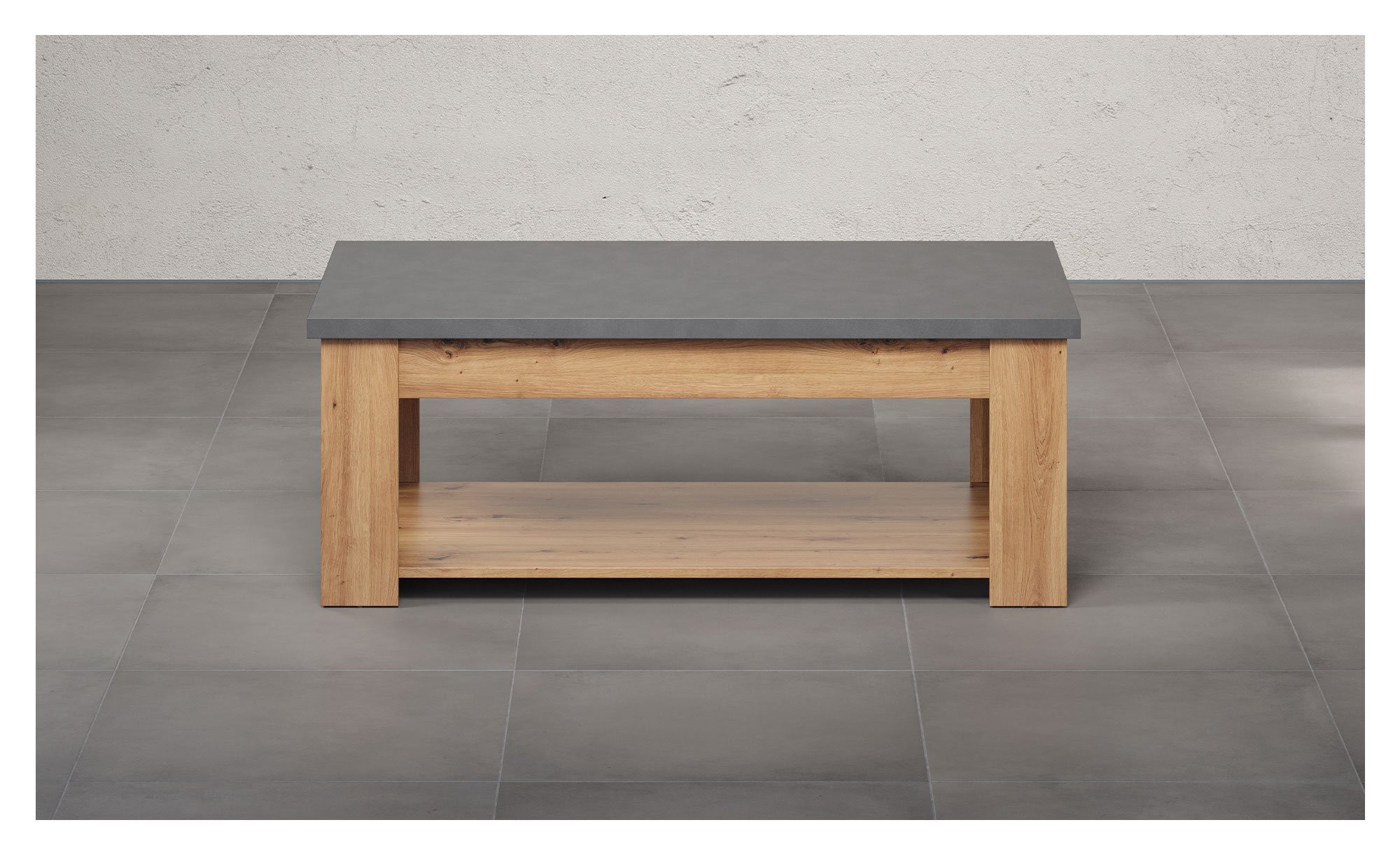 Der rechteckige Tisch ist mit einem tief angebrachten Ablageboden ausgestattet, auf dem Sie diverse Gegenstände platzsparend ablegen und lagern können.