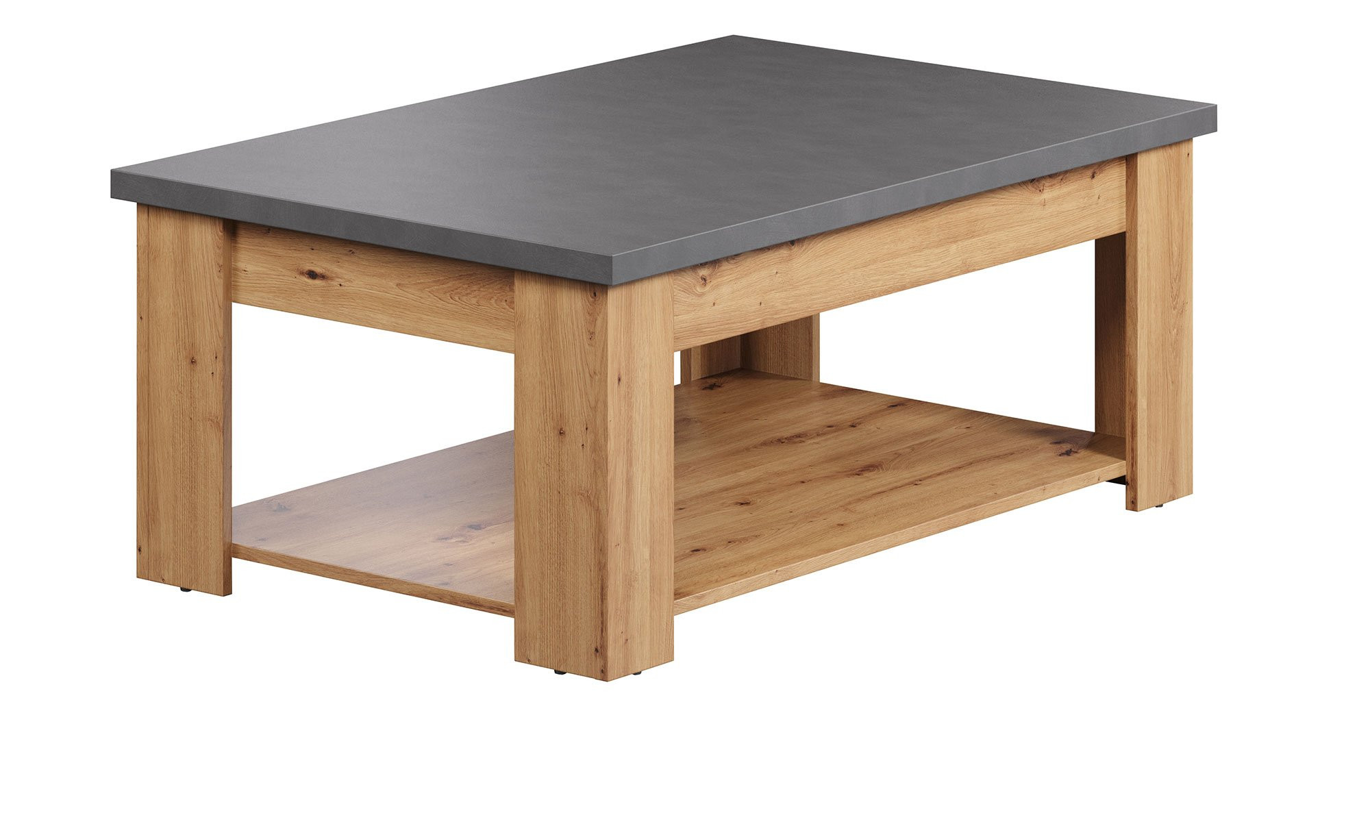 Sowohl das Gestell als auch die Platte des ca. 120 x 46 x 67 cm großen Tischs besteht aus Holzwerkstoff. Während ersteres allerdings das naturnahe Dekor Artisan Eiche trägt, wurde die Tischplatte in einem ansprechenden Grau / Anthrazit gestaltet. Eine Melaminbeschichtung der Oberflächen sorgt dafür, dass Sie lange Freude am Möbel haben.