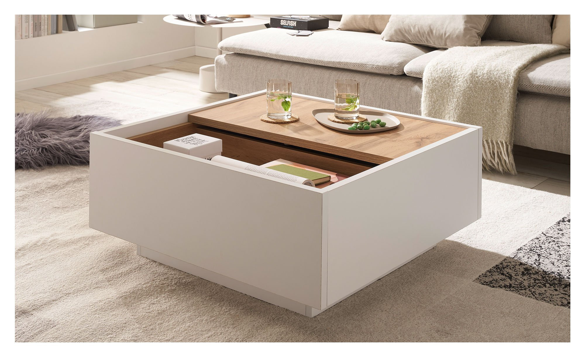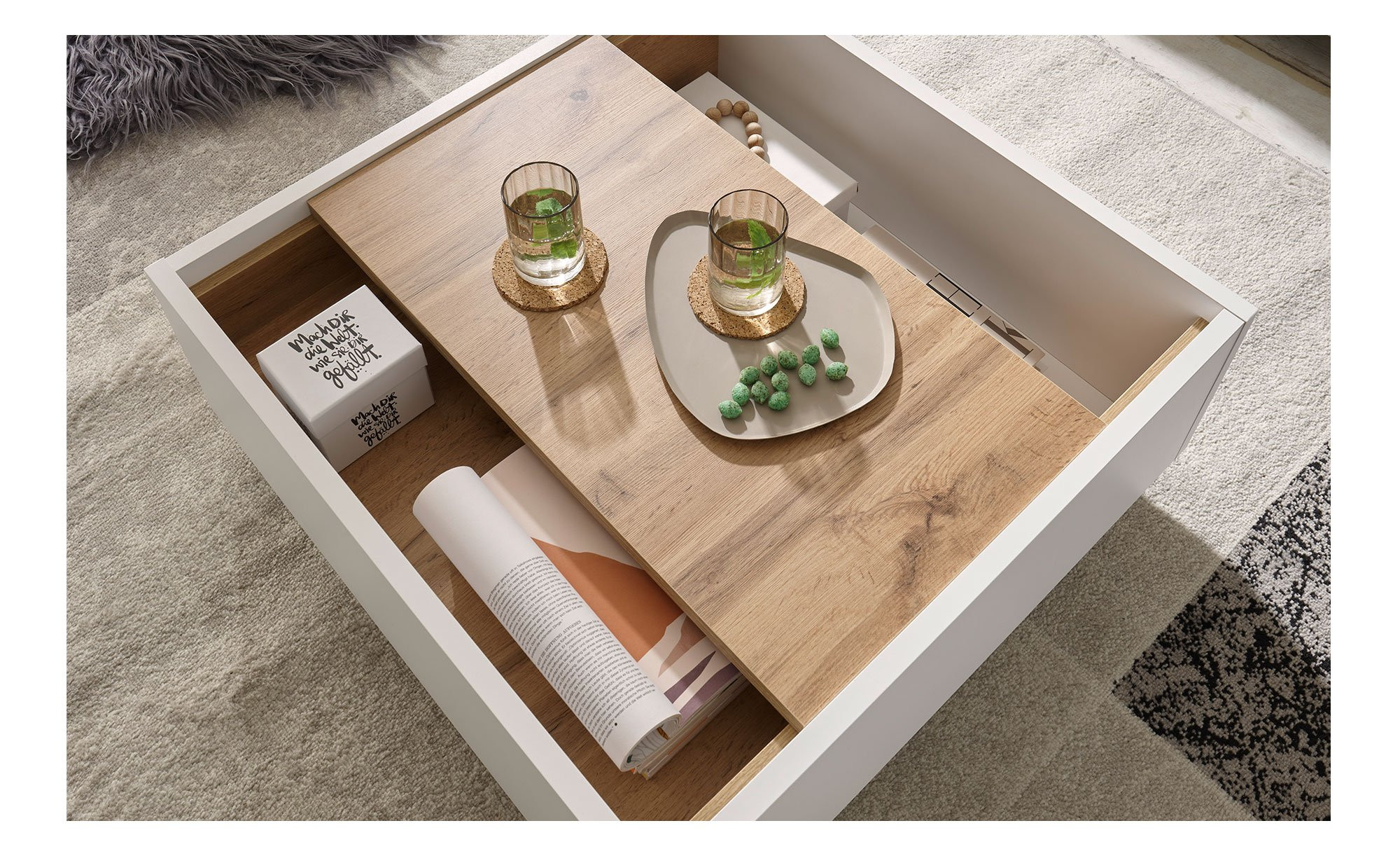 Mit seinem modernen Design bildet der quadratische Couchtisch Leander den perfekten Mittelpunkt Ihrer Sofa-Ecke.