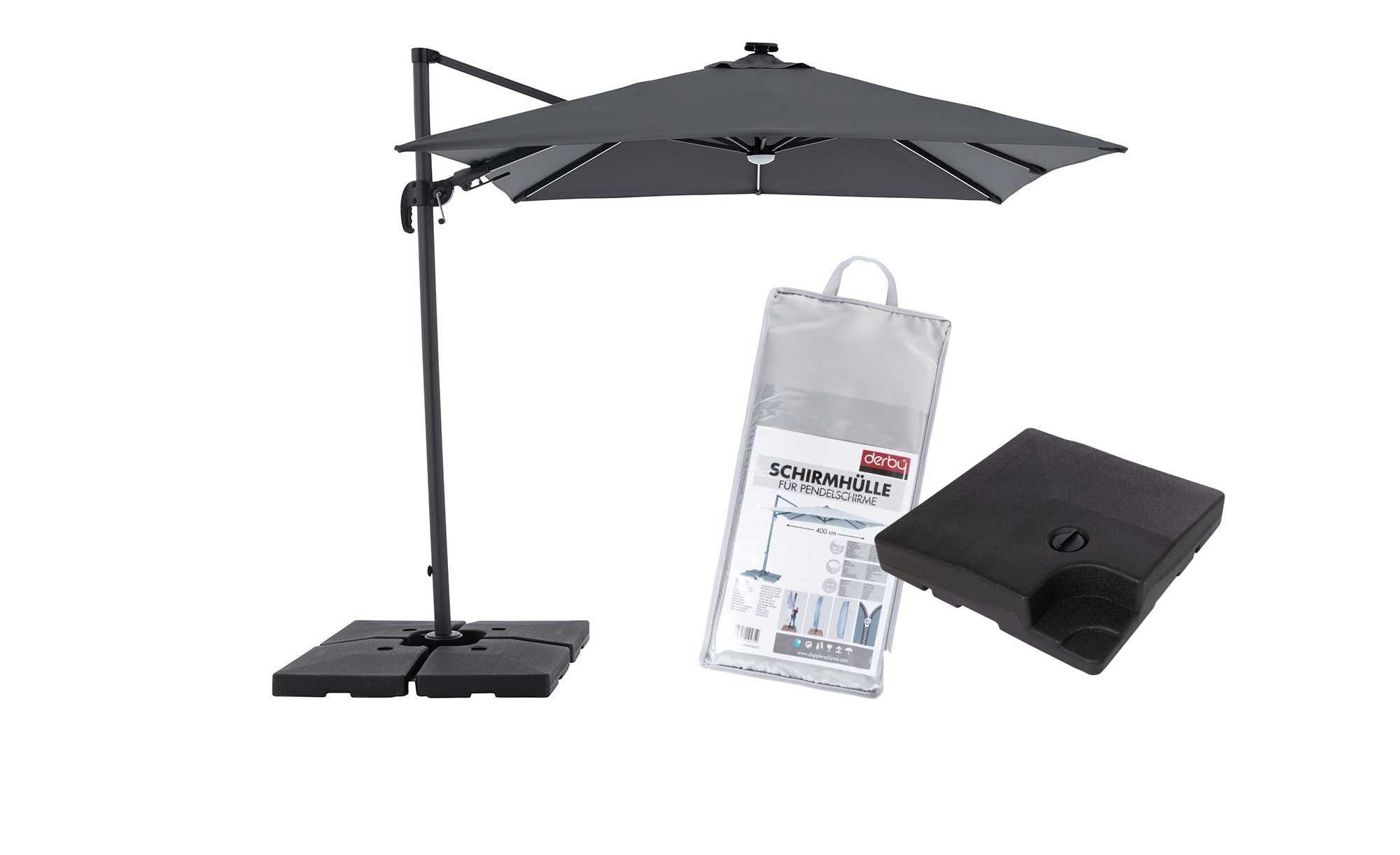 - Set beinhaltet: RAVENNA AX LED-Schirm, Beschwerplatte füllbar 20kg, 4er-Set, Schutzhülle Pendelschirme
