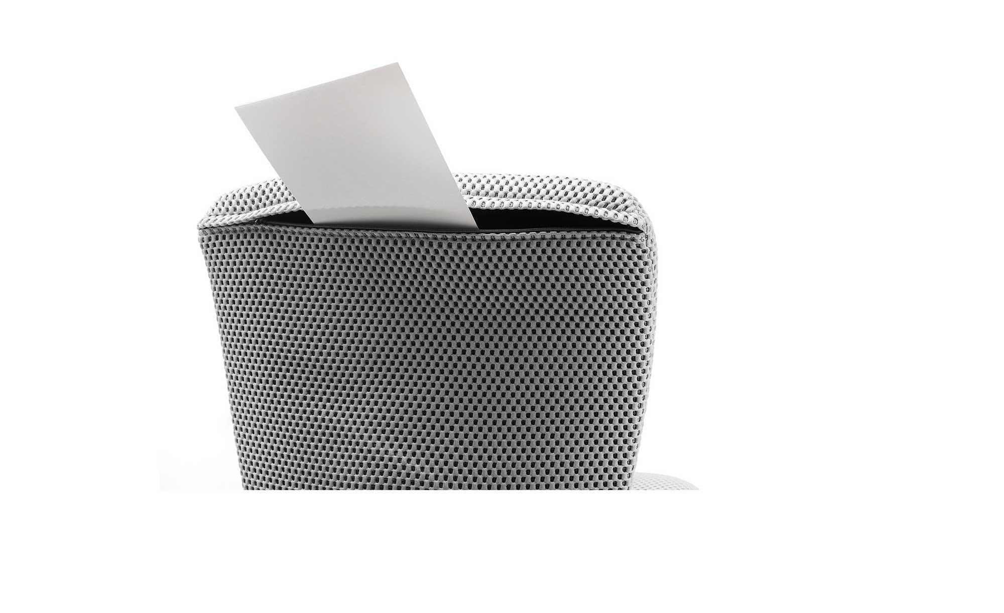 - Geheimfach auf der Rückseite der Stuhlrückenlehne, verschließbar mit Reißverschluss
