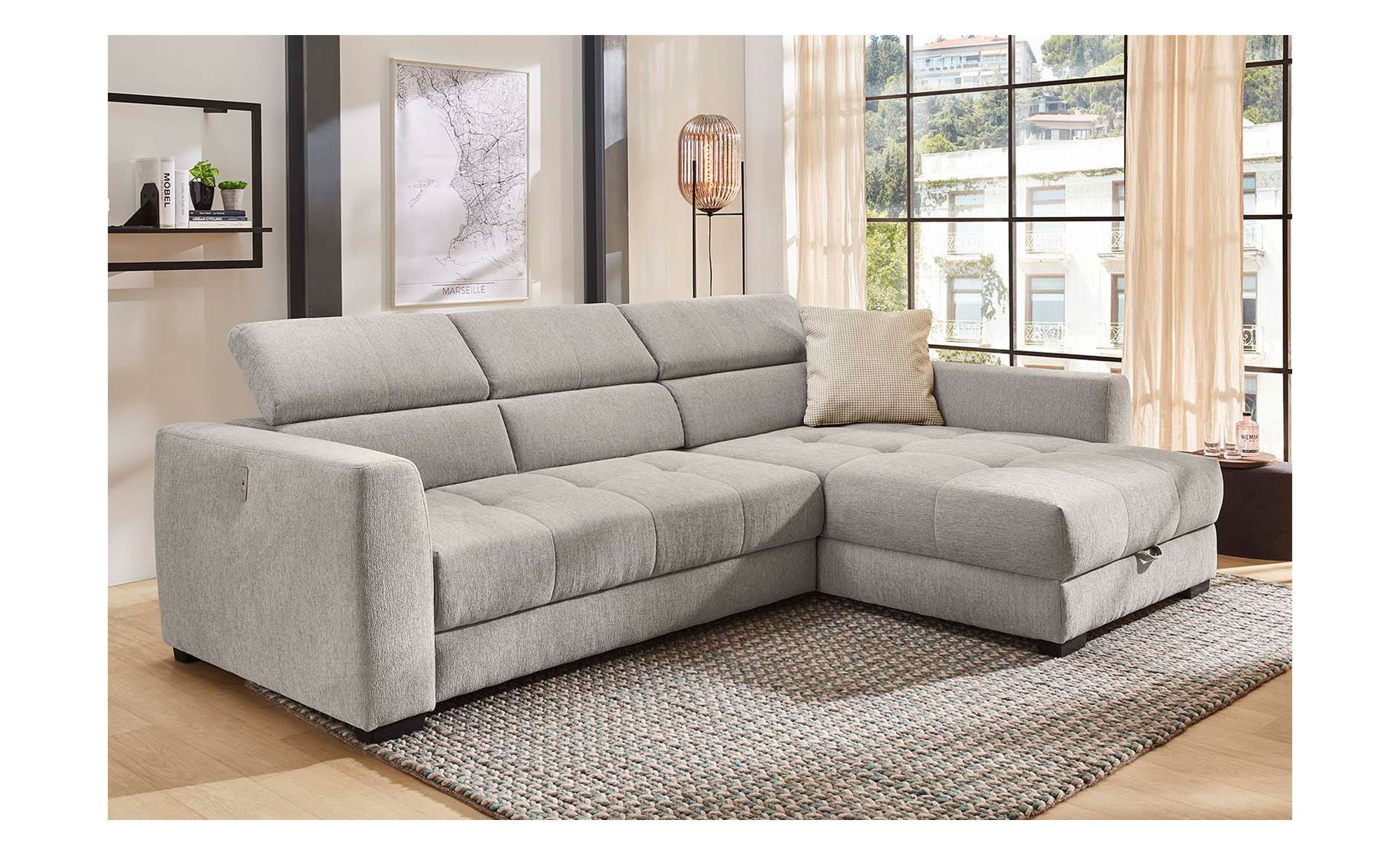Mithilfe der elektromotorischen Sitztiefenverstellung entsteht eine Tiefe von ca. 112 cm bzw. eine Liegefläche mit Maßen von ca. 255 x 92 cm. Ein von vorne zu öffnender Bettkasten sorgt für Stauraum, darüber hinaus ist das Ecksofa Selina auch mit einem USB-Ladeport ausgestattet.