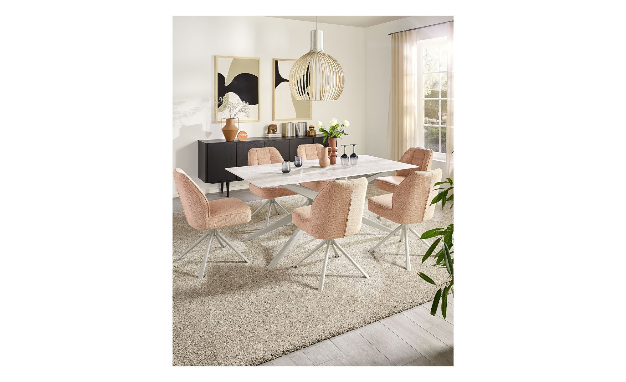 Unser Esstisch Hanna ist ein eleganter Begleiter für den Alltag und bringt stilvolle Akzente in Ihren Wohn- oder Essbereich.