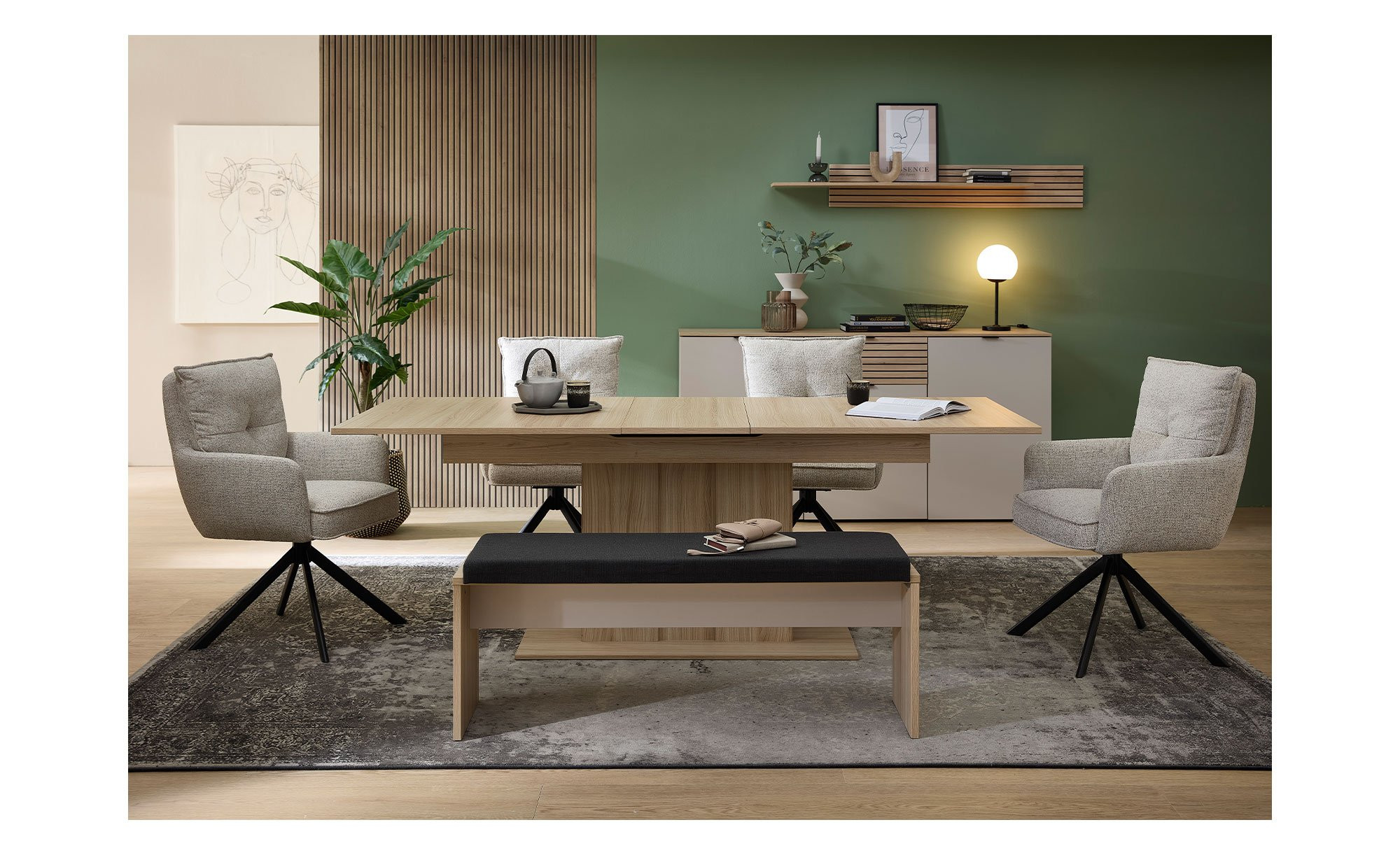 Der Esstisch Inka begeistert durch ein modernes Design und flexible Anpassungsmöglichkeiten.