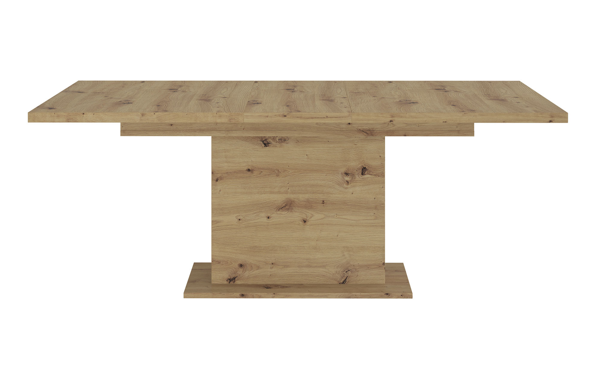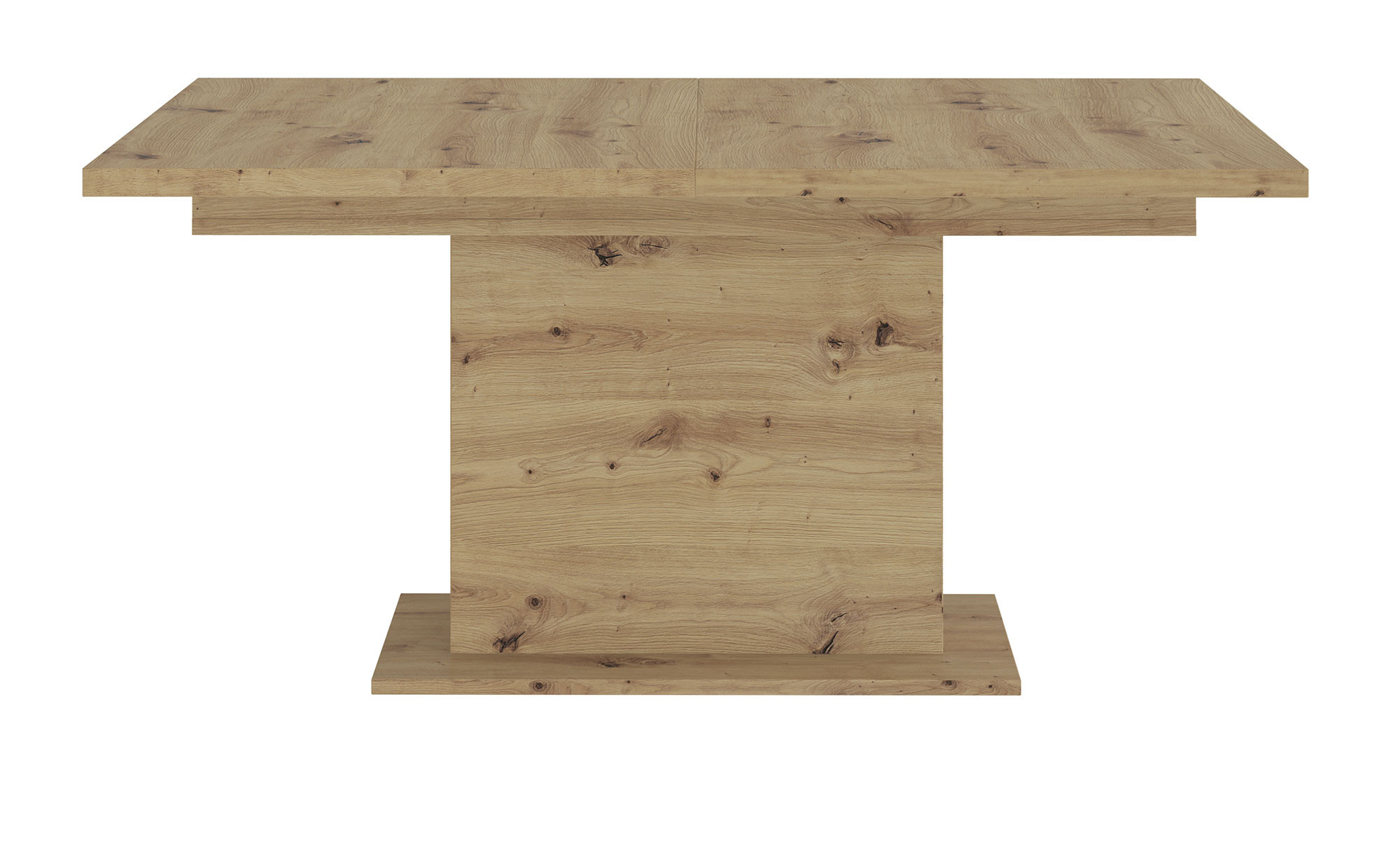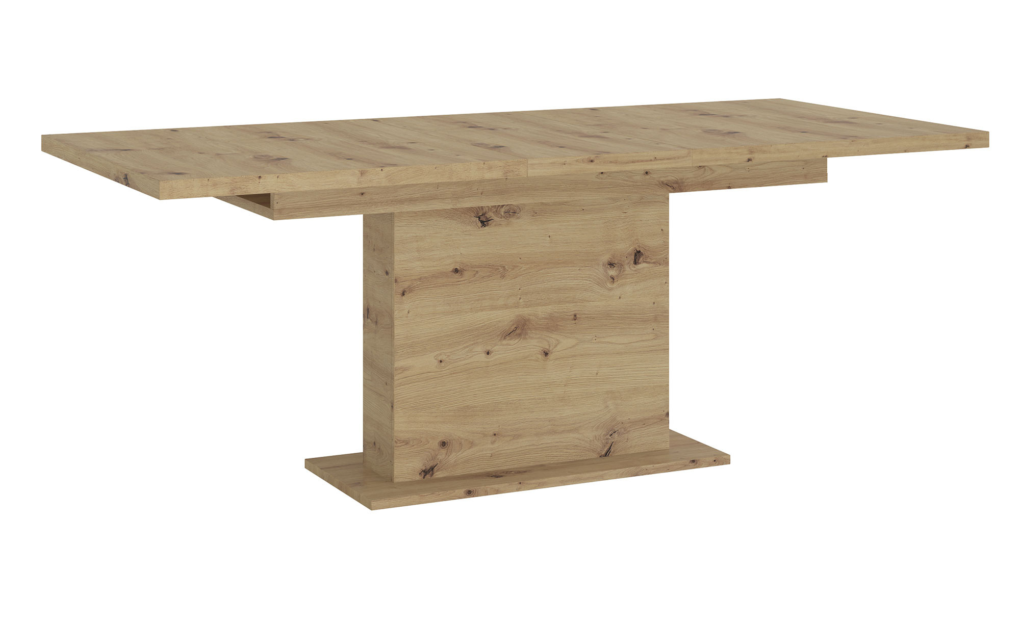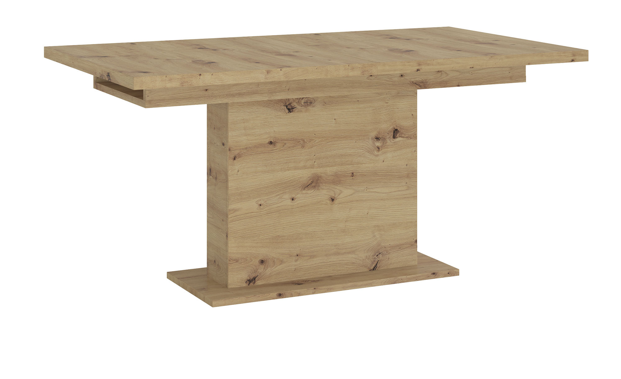 Die naturnahe Gestaltung der rechteckigen Platte und des Säulenfußes im Artisan Eiche-Dekor sorgt für eine angenehme Atmosphäre im Raum. Damit Sie lange Freude an Ihrem Tisch haben, wurden seine Oberflächen zudem mit widerstandsfähigem Melaminharz beschichtet. Dieses lässt sich leicht reinigen und beugt Kratzern vor.