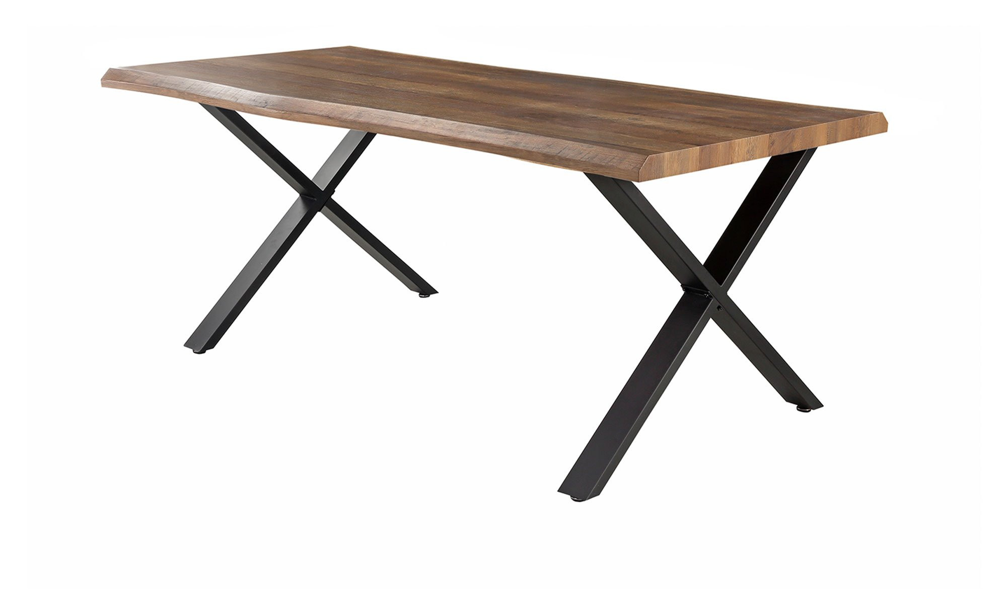 Die robuste Tischplatte ruht auf einem X-förmigen Metallgestell in Schwarz, das für sicheren Stand und moderne Optik sorgt. Mit einer Belastbarkeit von bis zu ca. 110 kg ist der Esstisch Mania nicht nur ein optisches Highlight, sondern auch ein zuverlässiger Begleiter für den täglichen Gebrauch in Küche und Esszimmer.