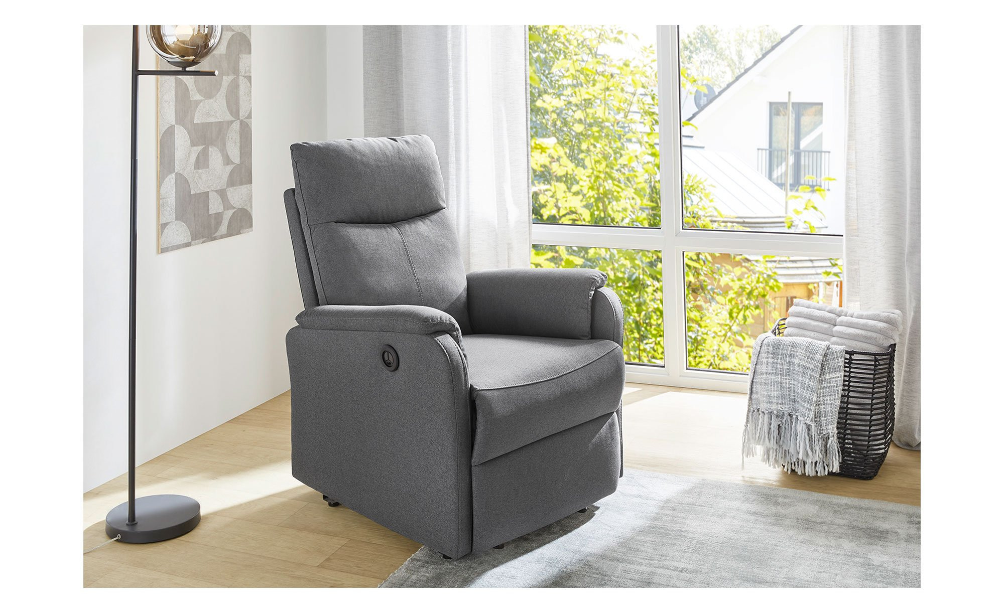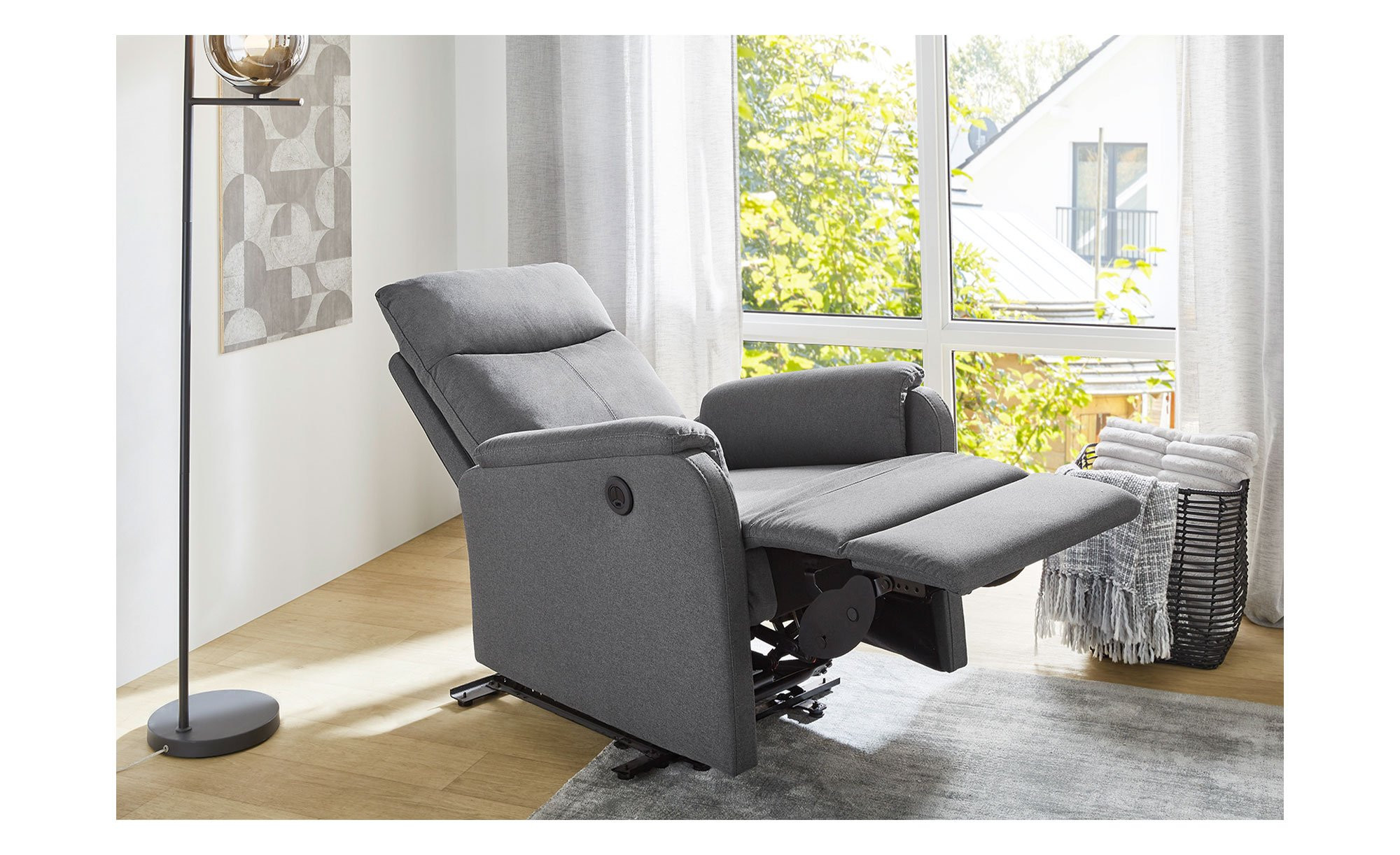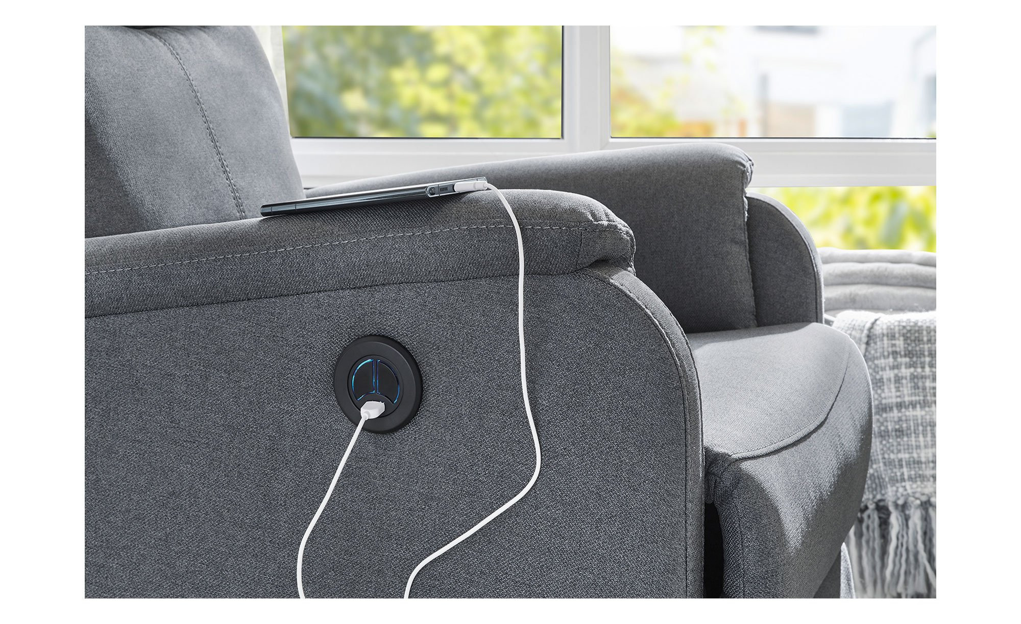 Im ca. 45 cm breiten Sitz erwarten Sie eine bequeme Federkernpolsterung und zusätzliche Wellenfedern. Eine elektromotorische Relaxfunktion und eine über die Bedienelemente in den Armlehnen steuerbare Liegefunktion runden das Entspannungs-Paket ab. Außerdem wurden Fußstützen und USB-Ladeports mit einer passenden USB-Funktion in der Bedieneinheit integriert.