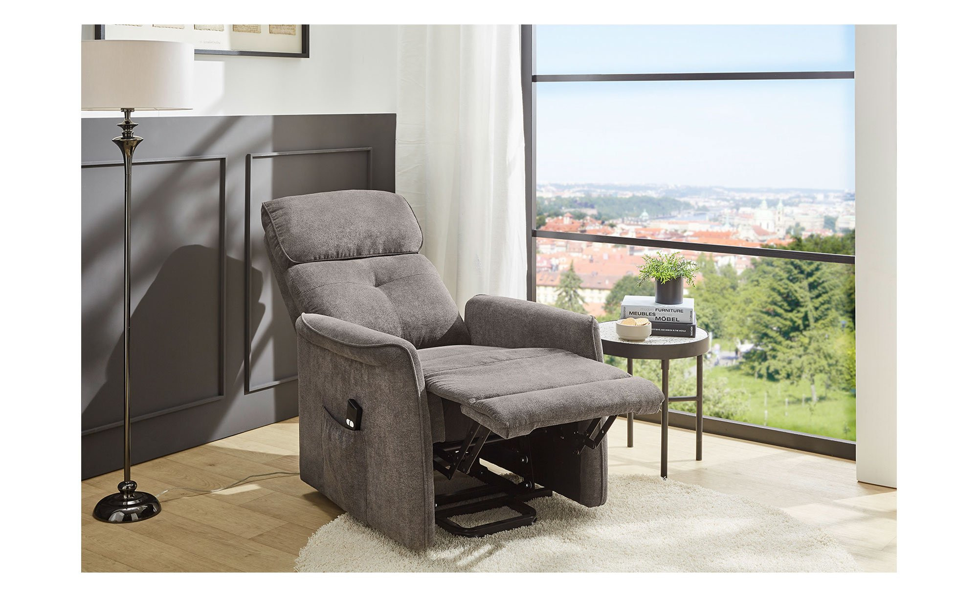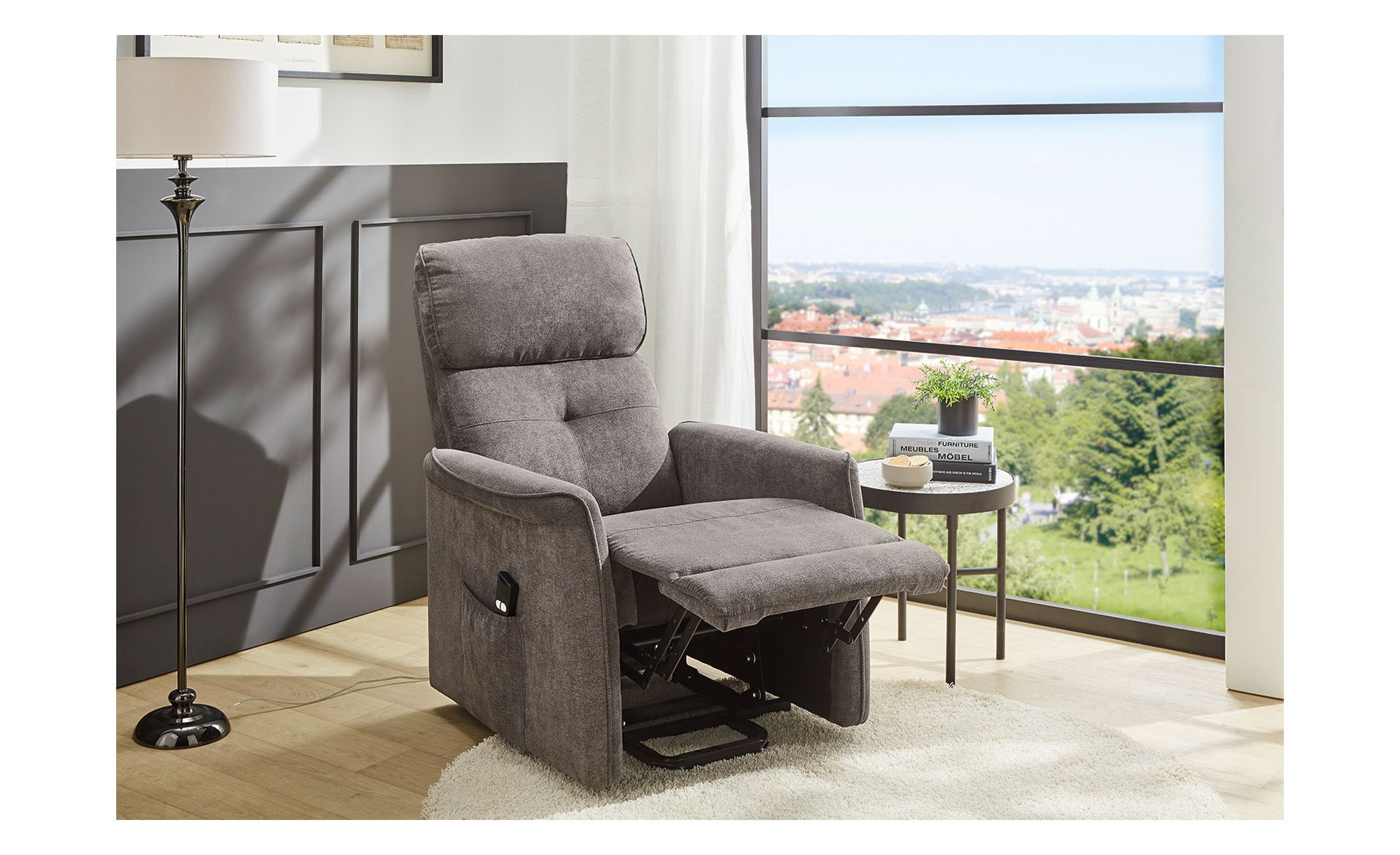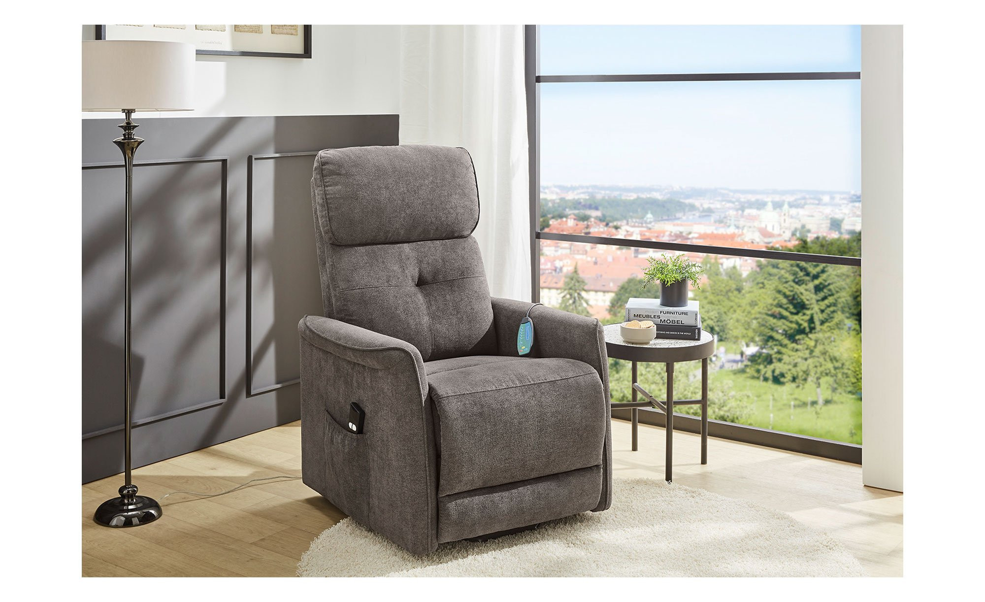Der Sitz des Artikels ist ca. 50 cm breit. Seinen Komfort verdankt er unter anderem der Federkernpolsterung und zusätzlichen Wellenfedern. Neben einer Fußstütze erwartet Sie auch eine elektrische Relax-u. Aufstehfunktion. Einzelne Zonen sind hier punktuell steuerbar. Noch angenehmer wird es dank der integrierten Massagefunktion mit unterschiedlichen Intensitätsstufen. Diese bedienen Sie über eine kabelgebundene Fernbedienung. Für kuschelige Wärme sorgt bei all dem die Heizmöglichkeit innerhalb der Sesselrückenlehne.