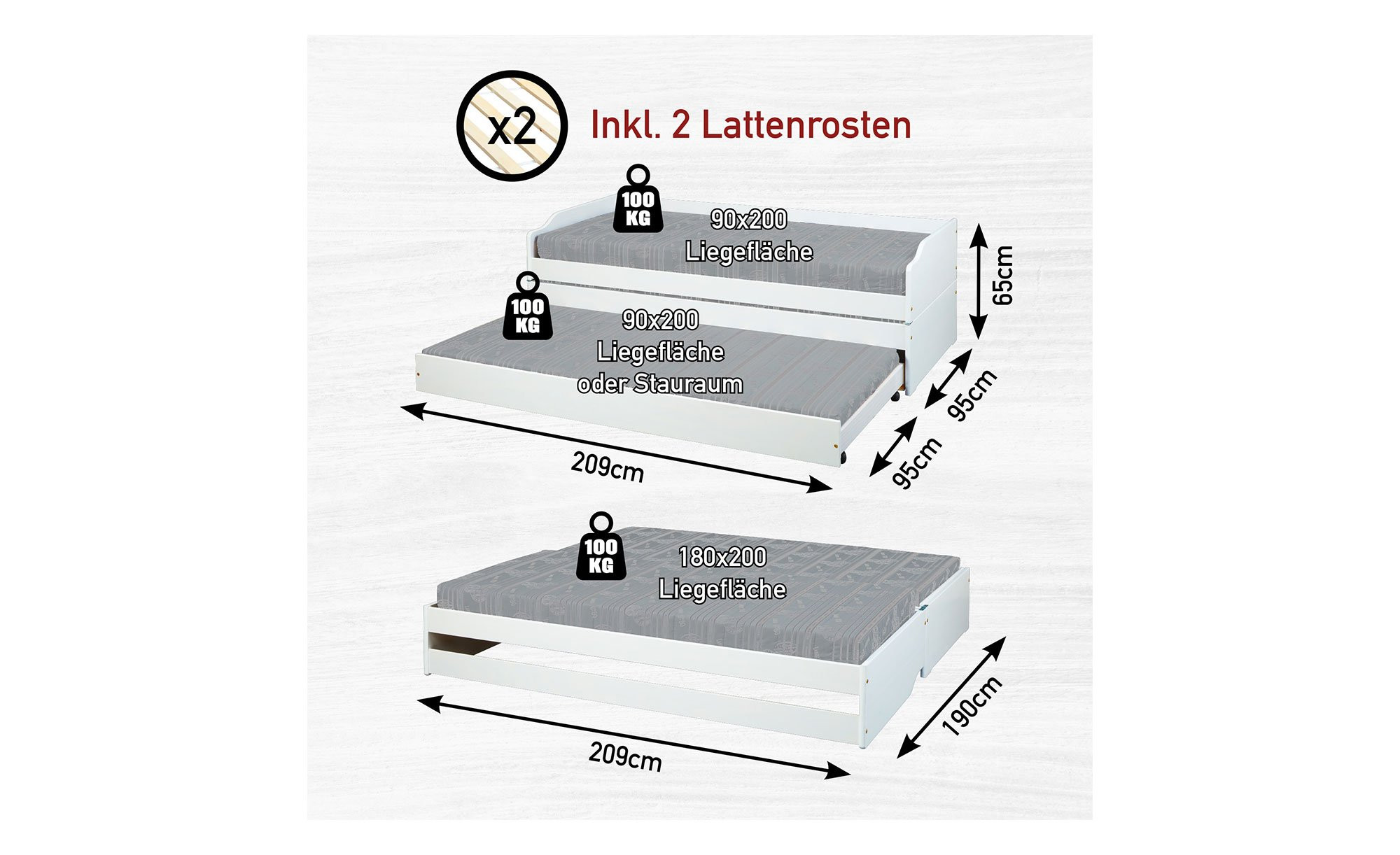 - Keine Matratzen im Lieferumfang enthalten