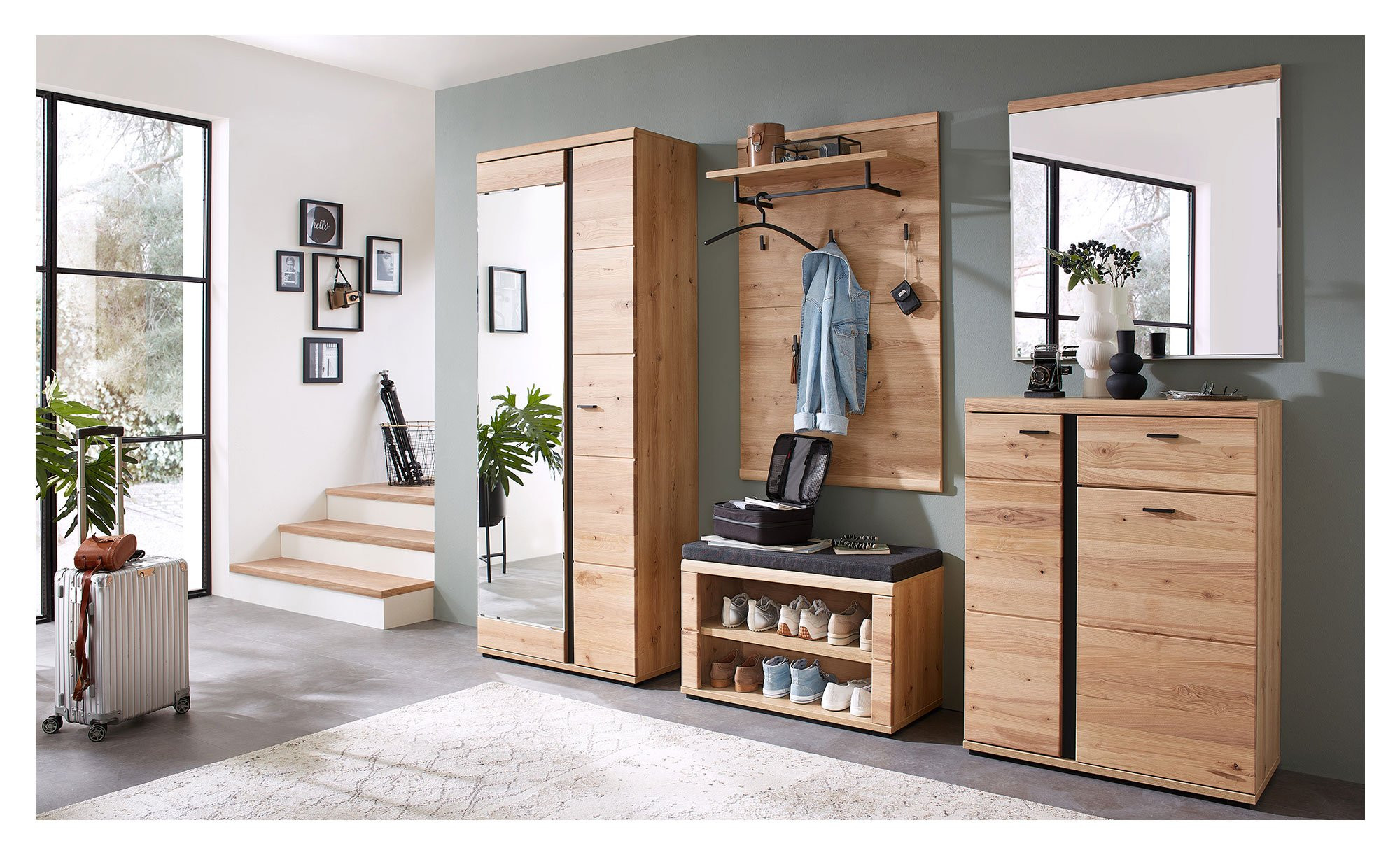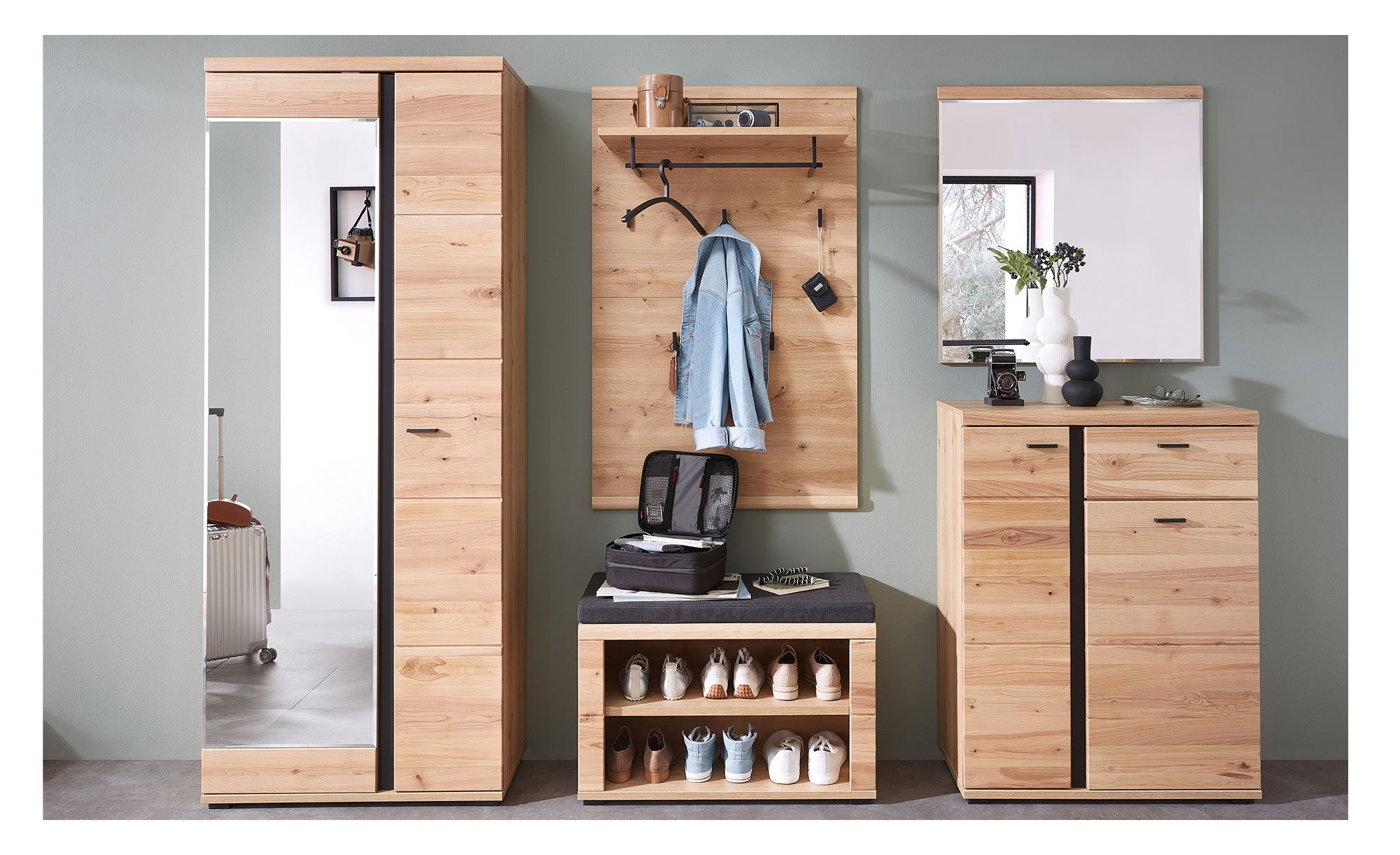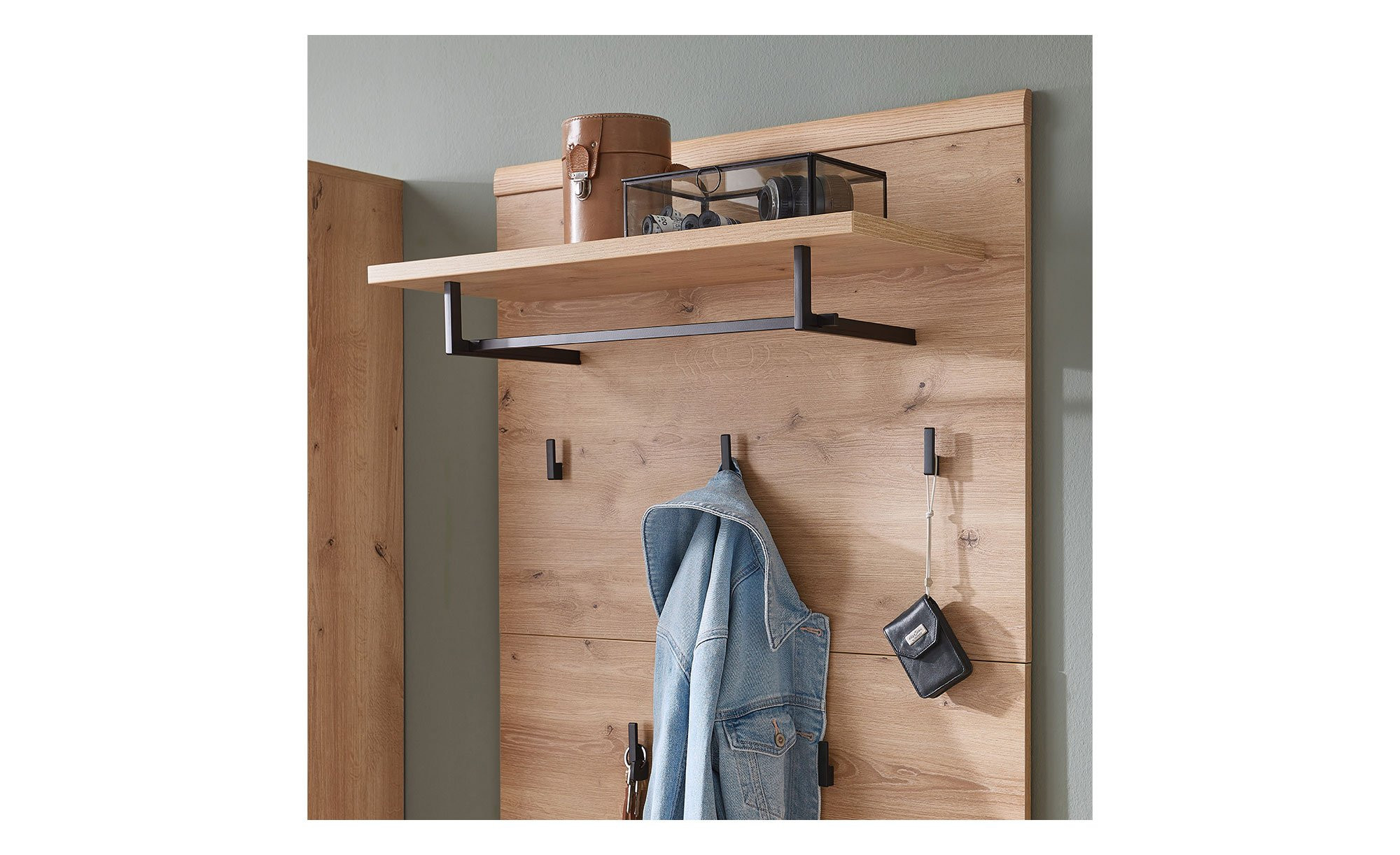 Das Garderobenpaneel Sonos empfängt Sie in Ihrem Eingangsbereich mit verschiedenen Möglichkeiten zur Aufbewahrung Ihrer Kleidung.