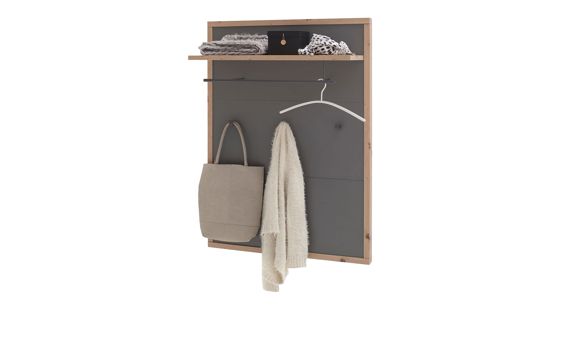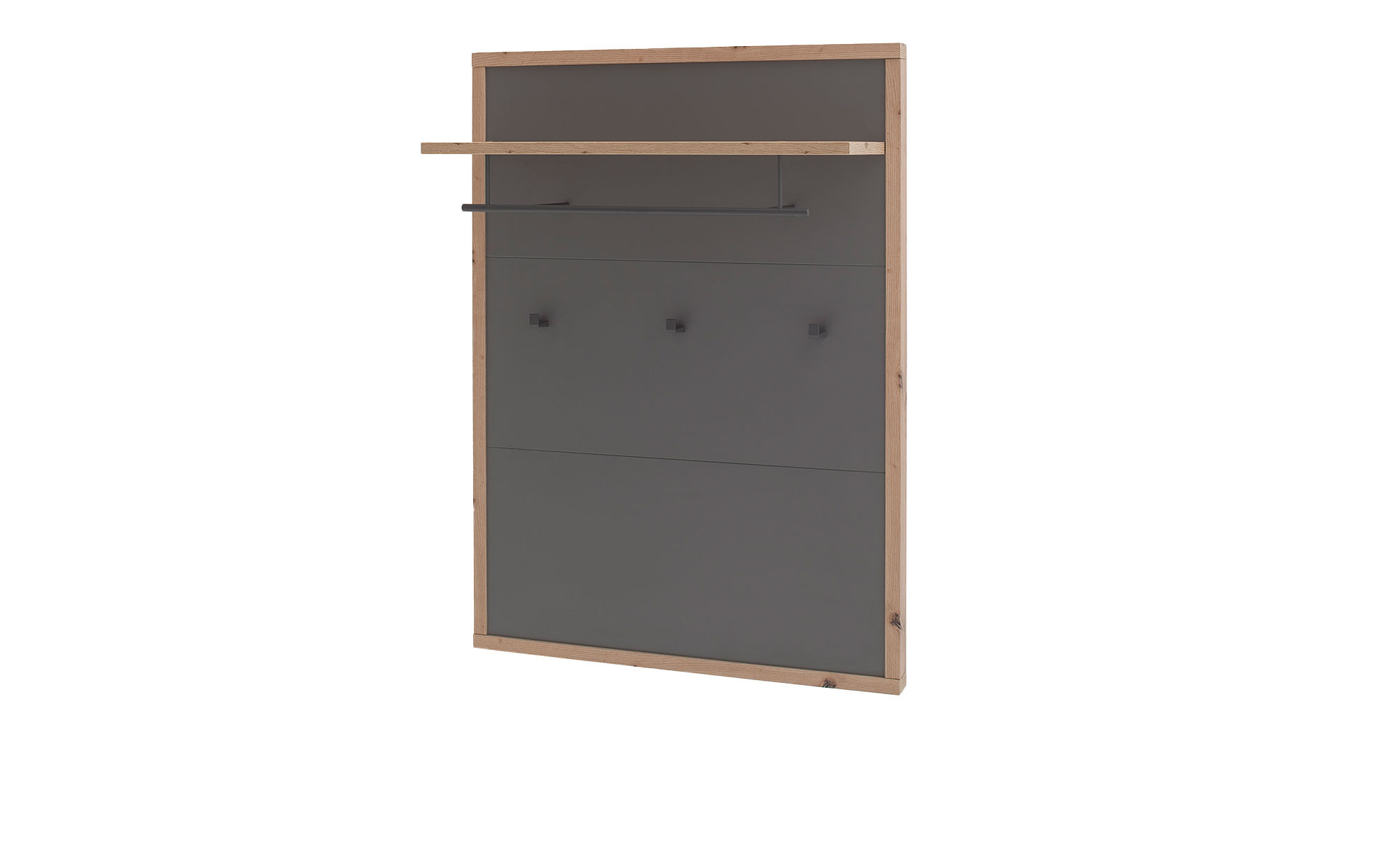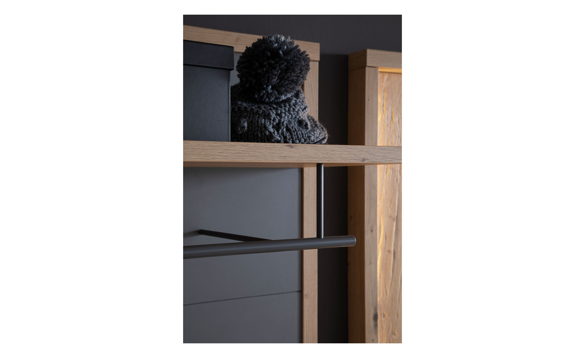 Zum ca. 86 x 118 x 32 cm großen Paneel gehören zusätzlich eine Hutablage und eine schwarzgraue Kleiderstange. Außerdem wurden drei praktische Haken integriert.