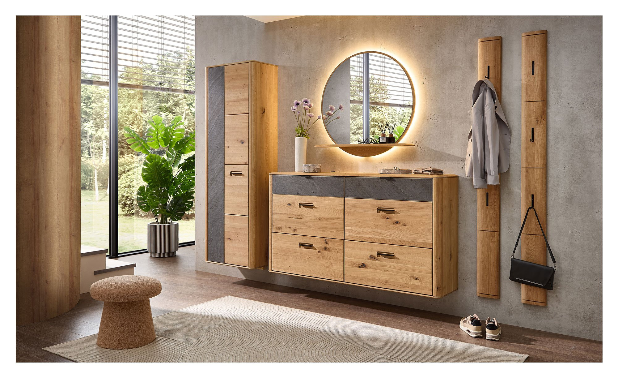 Mit dem modernen Garderobenschrank Medina schaffen Sie nicht nur Ordnung in Ihrem Eingangsbereich, sondern sorgen auch für ein ansprechendes Flair!
