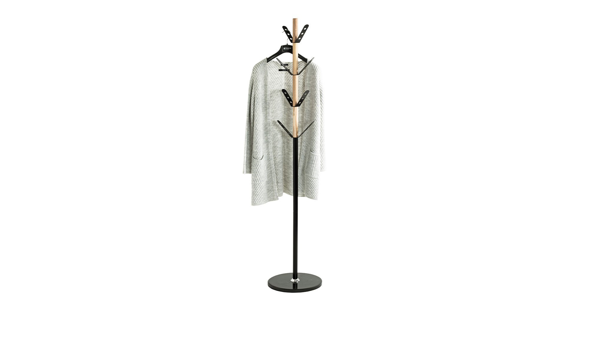 Auf gelungene Weise verbindet der Garderobenständer Bill eine moderne Optik mit natürlichen Einflüssen und einem praktischen Platzangebot.