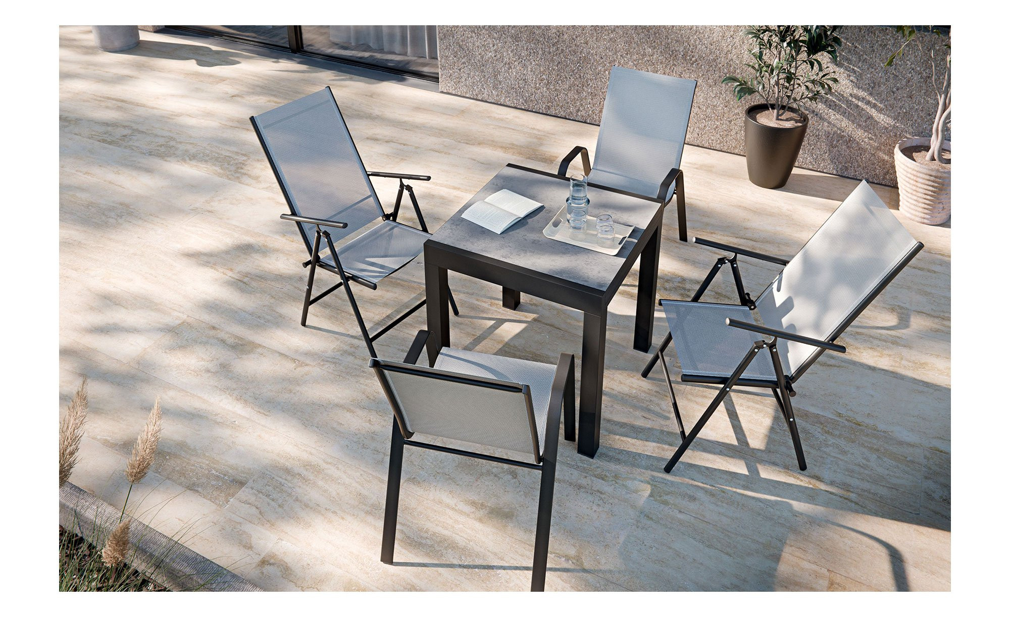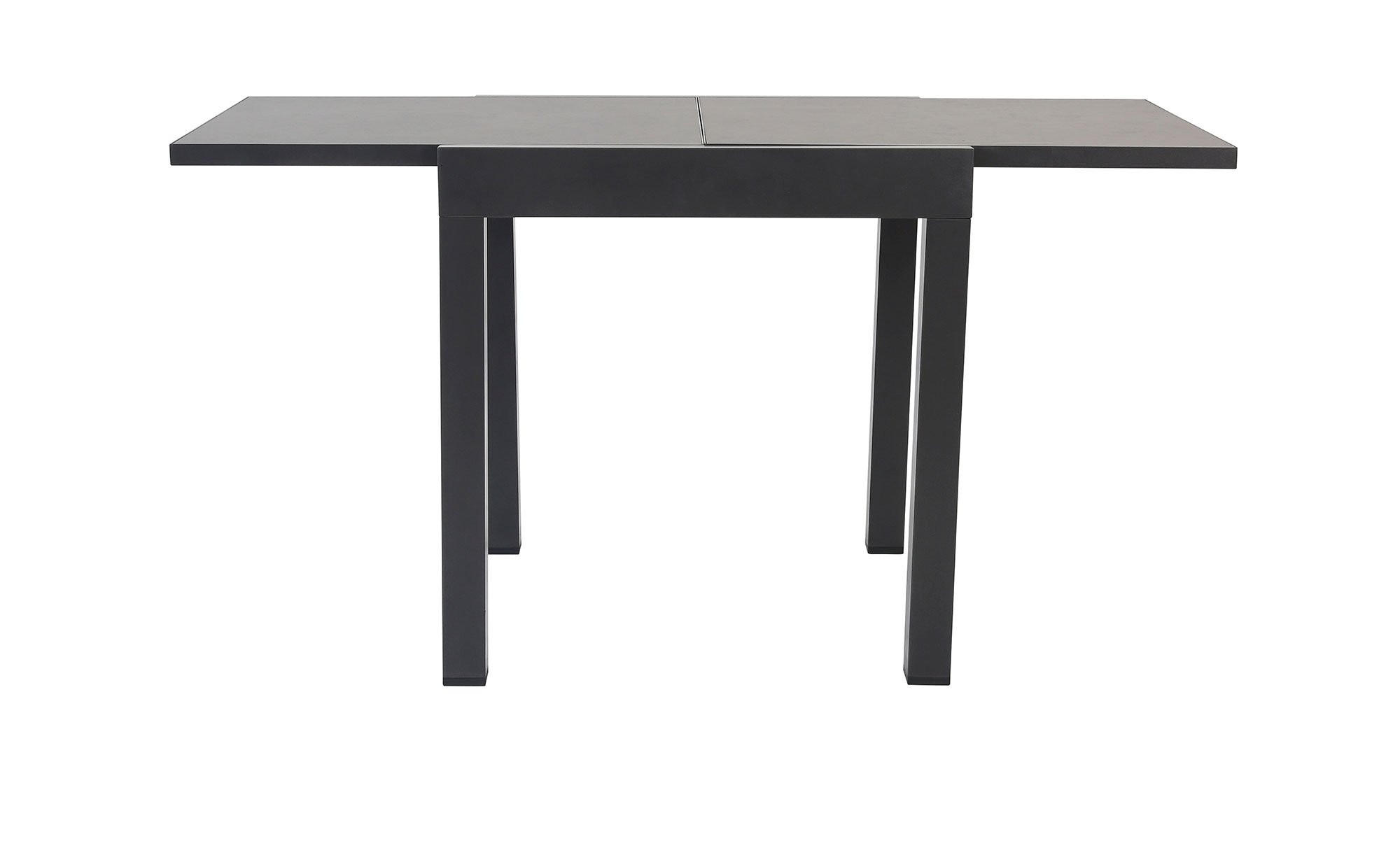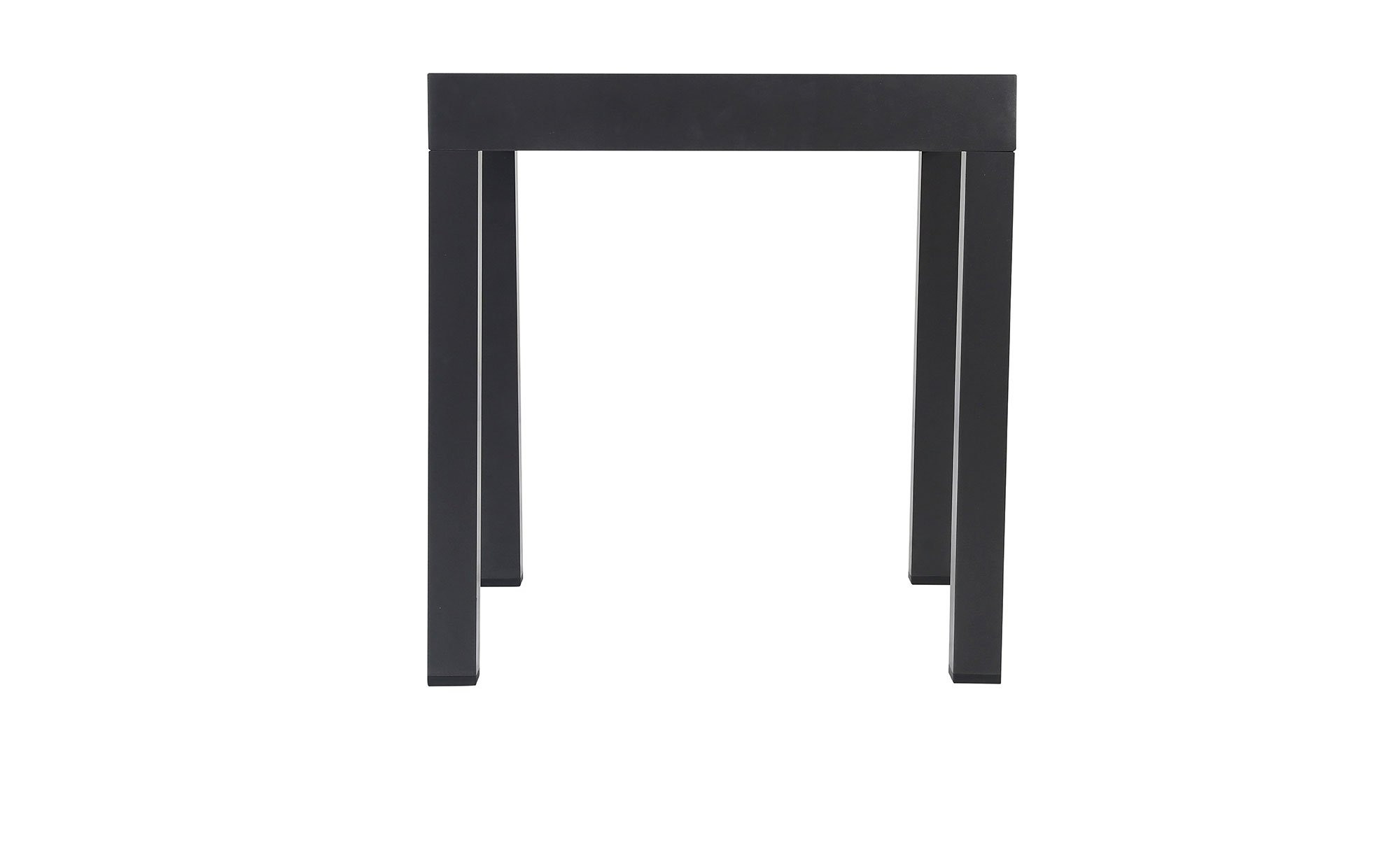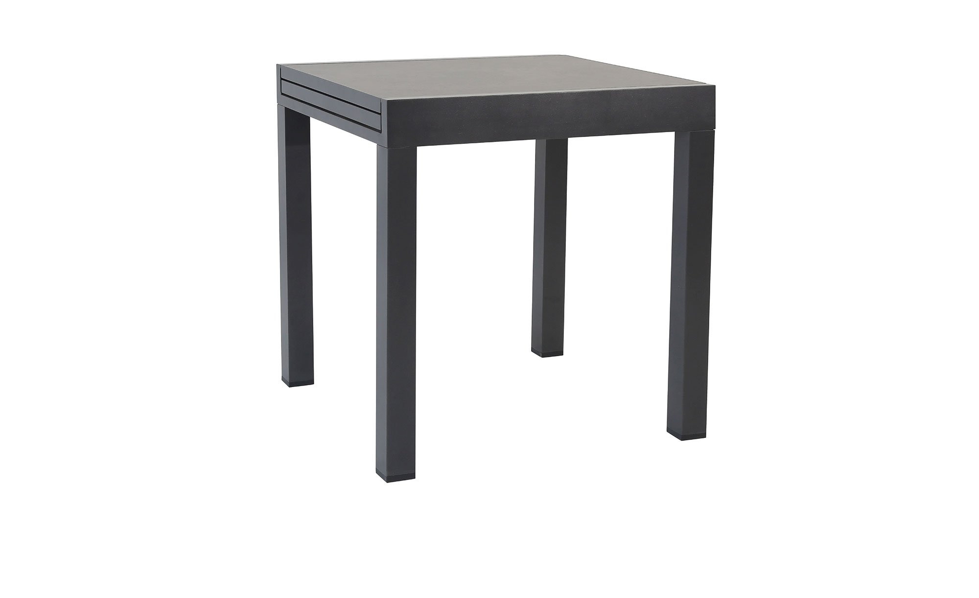 Mit Maßen von ca. 72 x 76 x 72 cm ist das Möbelstück angenehm kompakt. Es verfügt über ein stabiles Vierfußgestell aus pulverbeschichtetem Aluminium in Anthrazit. Darauf befindet sich die quadratische Tischplatte aus PSPC, die ebenfalls in einem eleganten Anthrazit gehalten ist.