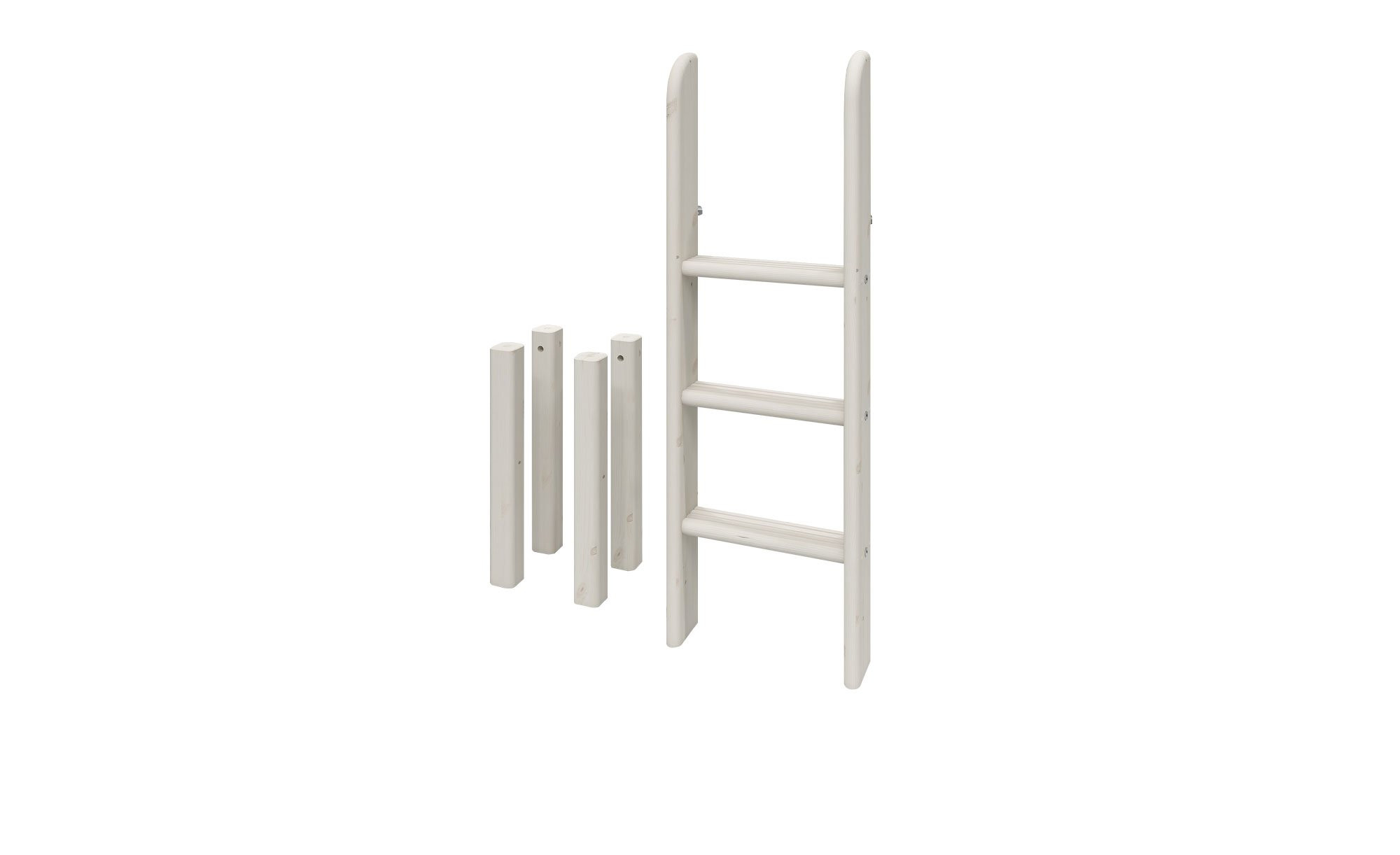 Bestehend aus weiß lasiertem Kiefernholz und mit einer Größe von ca. 11 x 120 x 41 cm fügt sich der Artikel perfekt ins Bild. Zum Schutz vor Unfällen ist die Leiter mit rutschfesten Stufen ausgestattet.