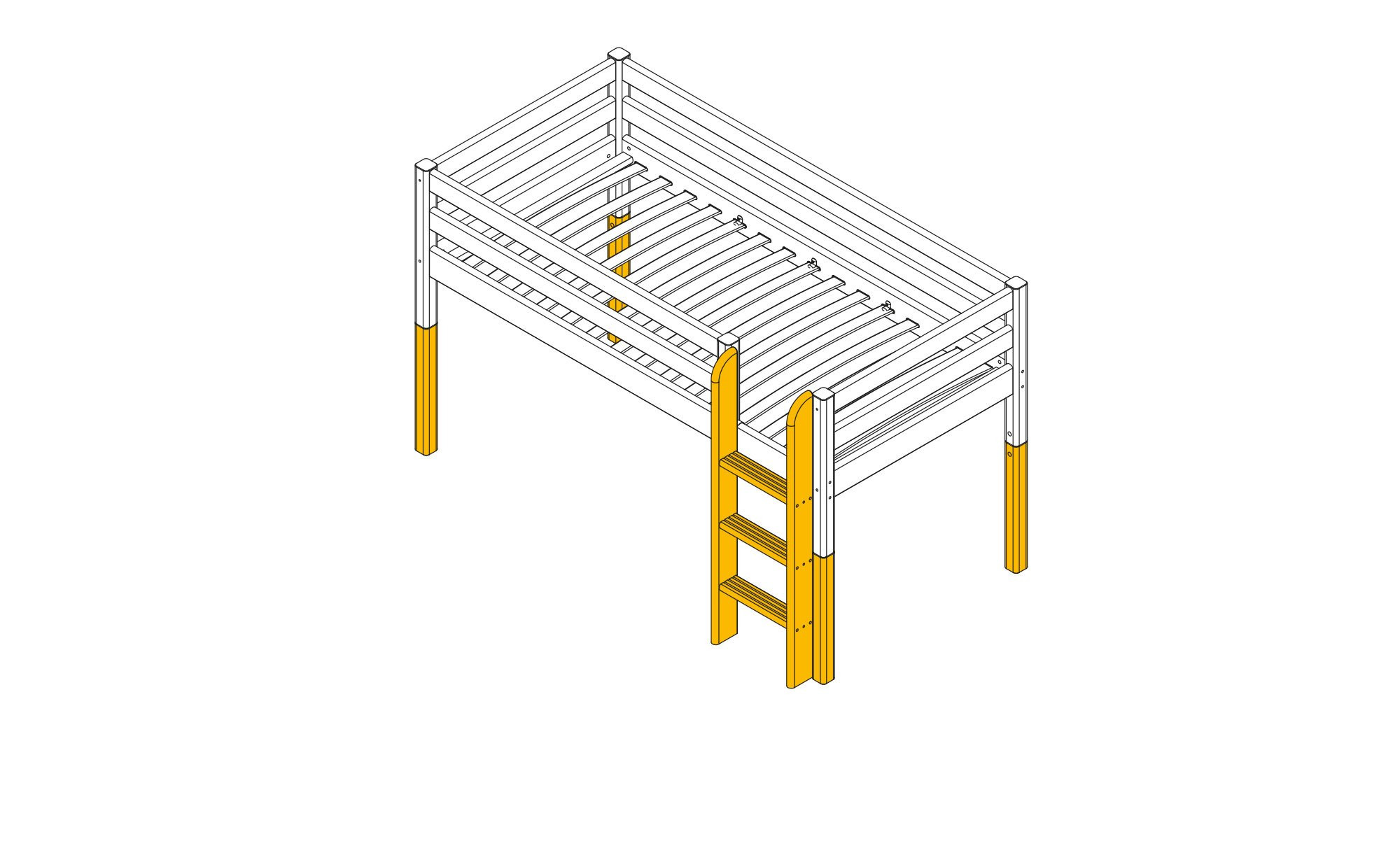 - Nutzbar für ein mittelhohes Bett in Kombination mit der 3/4 Absturzsicherung oder der 1/2 Absturzsicherung und einer Rutsche