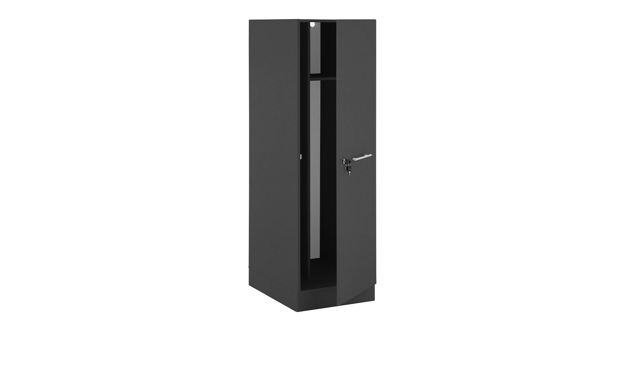 Front und Korpus des ca. 50 x 162 x 68 cm großen Artikels bestehen aus Holzwerkstoff in Anthrazit, geschützt durch eine pflegeleichte Melaminbeschichtung.