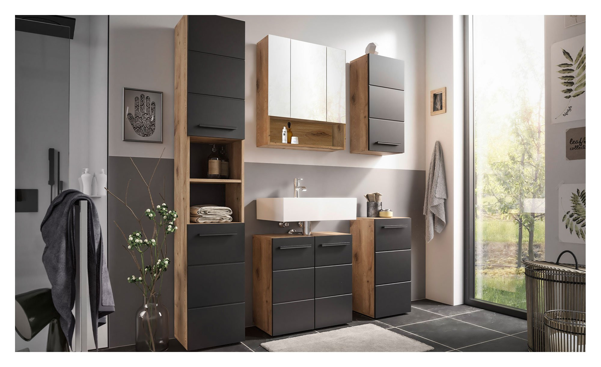 Der Hochschrank Viona fügt sich mit seiner stilvoll-natürlichen Optik und auf platzsparende Weise perfekt in Ihr Badezimmer.