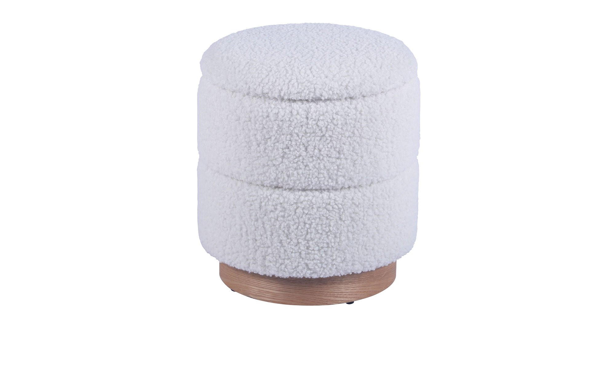 Der ca. 37 x 42 x 37 cm große Artikel verfügt über ein Gestell aus Ashtree-Holz und MDF. Dieses wird fast komplett von einem creme-weißen Bezug aus Sherpa-Stoff verdeckt. Zusätzlich sorgt eine ca. 3 cm starke Polsterung aus hochdichtem Schaumstoff für Gemütlichkeit.