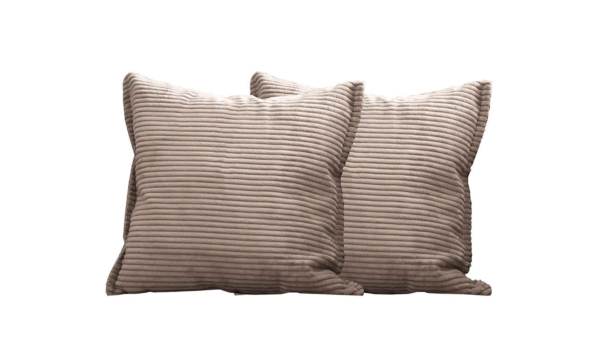 Das angebotene Set besteht aus zwei jeweils ca. 40 x 40 cm großen Kissen. Sie sind mit einem weichen Cordstoff in der Farbe Braun-Beige bezogen.