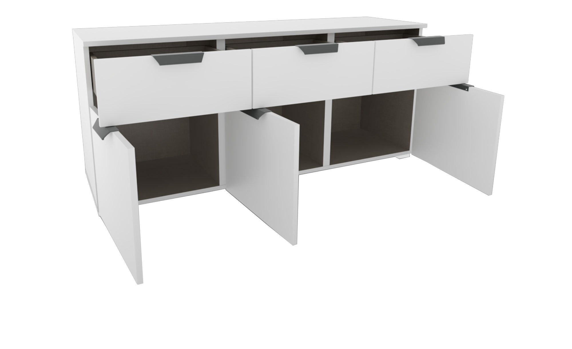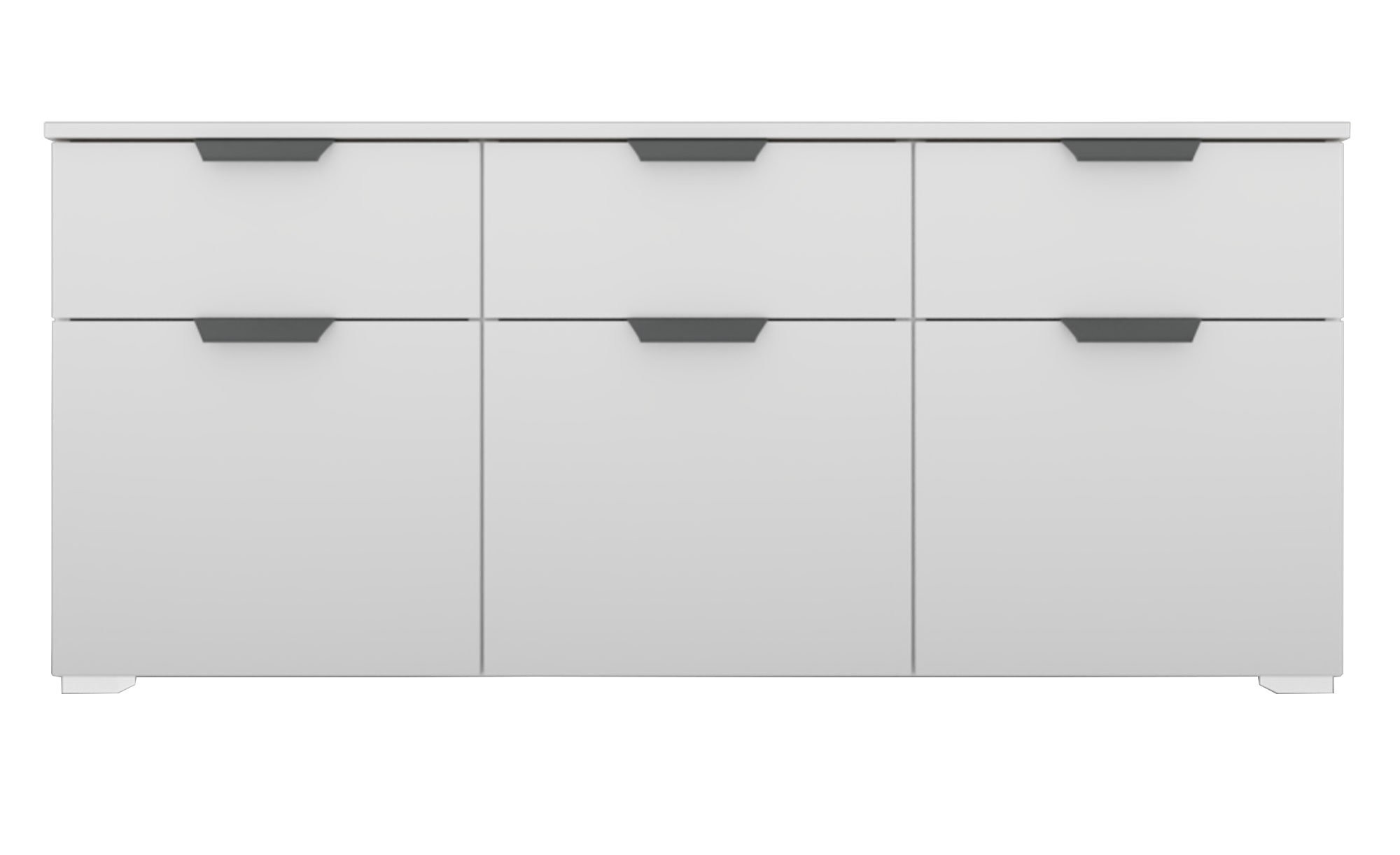 Der ca. 140 x 62 x 42 cm große Artikel besteht aus Holzwerkstoff und trägt mit seiner alpinweißen Farbgebung zur frischen Atmosphäre innerhalb des Raums bei. Rückwand und Innendekor sind hingegen in Texline-Optik gestaltet. Darüber hinaus erwarten Sie hochwertige Metallgriffe in Grau Metallic und alufarbige Kunststofffüße.
