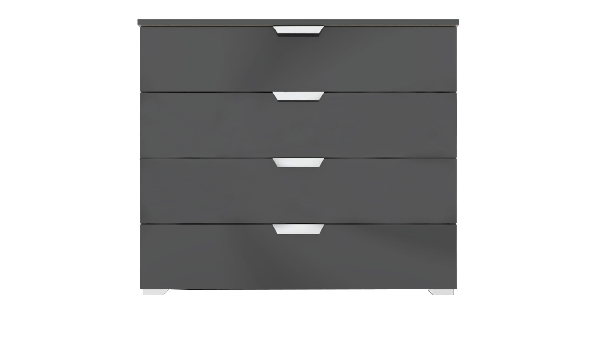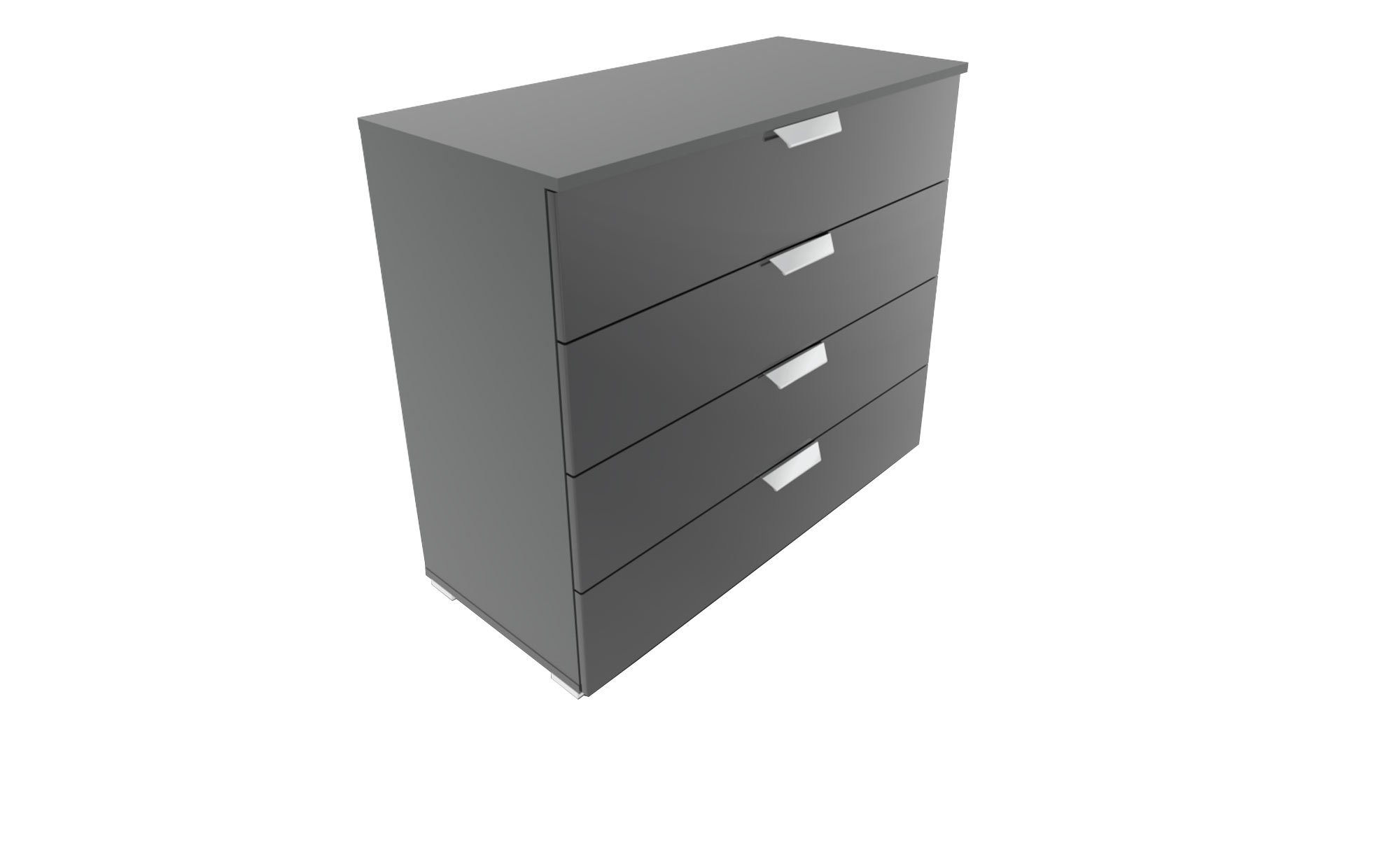 Während der Korpus des ca. 93 x 81 x 42 cm großen Artikels aus Holzwerkstoff im Farbton Grau-Metallic besteht, findet sich an der Front eine Glasauflage in der Ausführung Basalt. Perfekt ins Bild passen natürlich auch die chromfarbigen Metallgriffe und Kunststofffüße im Alu-Look. Innen erwartet Sie ein Texline-Design.