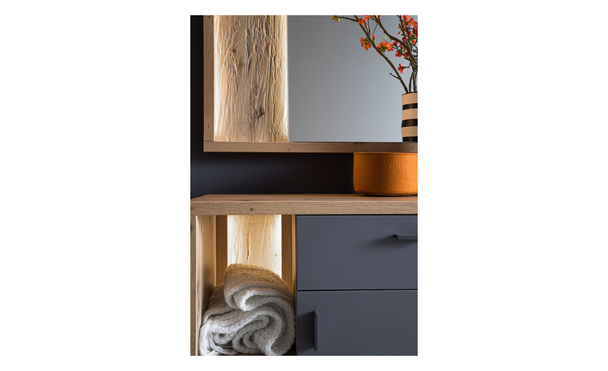 Eine Beleuchtung für die Kommode Liza ist optional erhältlich.