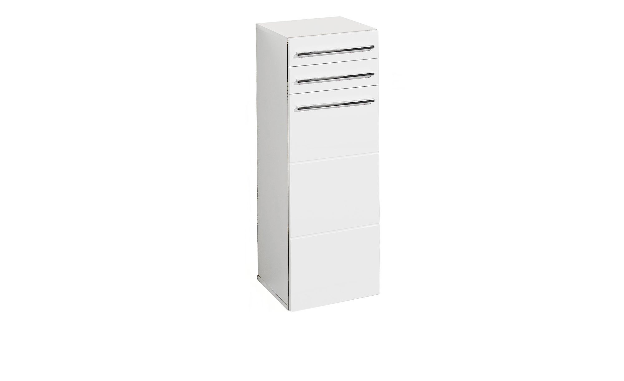 Der ca. 34 x 104 x 31 cm große Artikel verfügt über einen Korpus aus Holzwerkstoff, der in einem matten Weiß gestaltet ist. Eine Melaminharzbeschichtung schützt zuverlässig vor Kratzern und Abnutzung. Für ein elegantes Gesamtbild sorgt die hochglänzend weiß folierte Vorderseite.