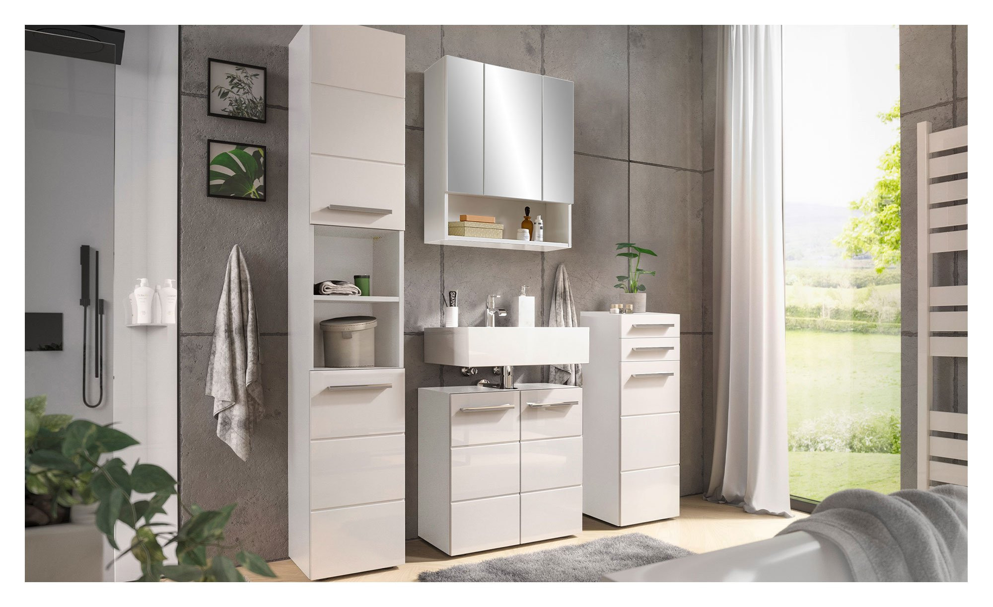 Auf platzsparende und zugleich stilvolle Weise bereichert die Kommode Mariel Ihr Badezimmer und schafft praktischen Stauraum.