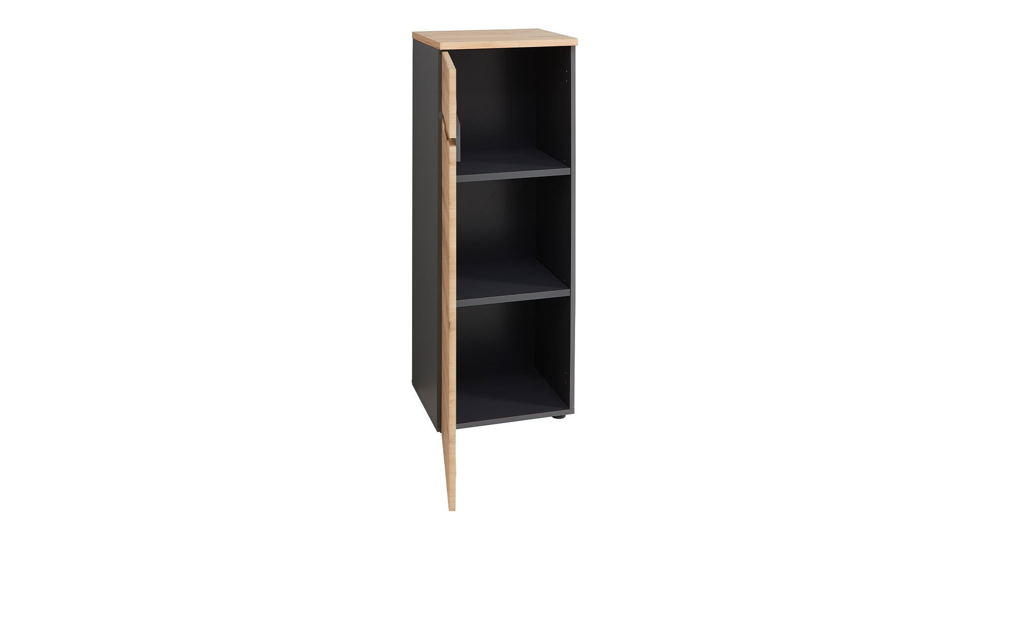Mit ihrem naturnahen Artisan Eiche-Dekor springt die aus MDF bestehende Front des Artikels unmittelbar ins Auge. Sowohl der Holzwerkstoff-Korpus als auch die Rückwand und das Innendekor sind hingegen in einem hochwertigen Graphit gehalten. Schwarze Füße in Form von Kunststoffgleitern fügen sich ideal ein.