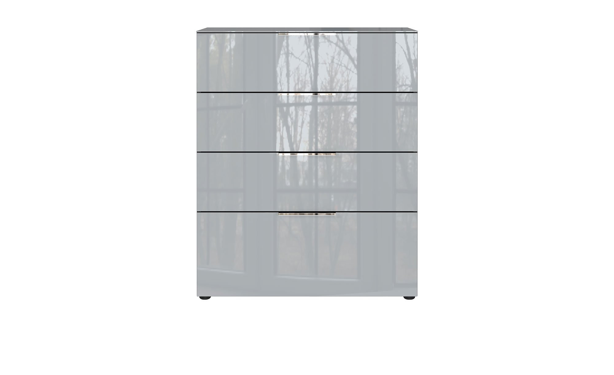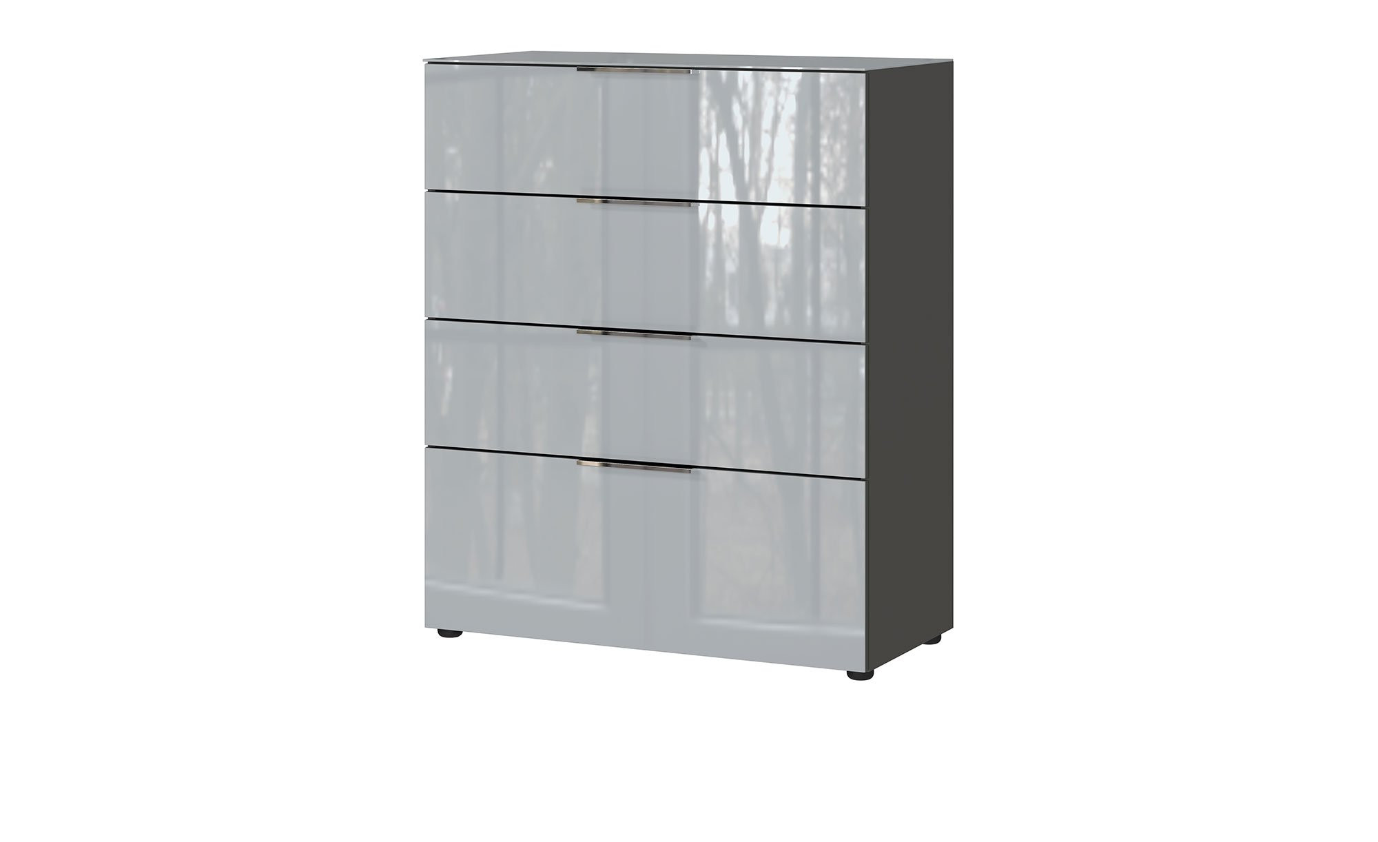 Neben schwarzen Kunststofffüßen ist die Kommode mit Metallgriffen in einem ansprechenden Chrom-Look ausgestattet. Sie helfen Ihnen beim Öffnen der vier Soft-Close-Schubkästen.