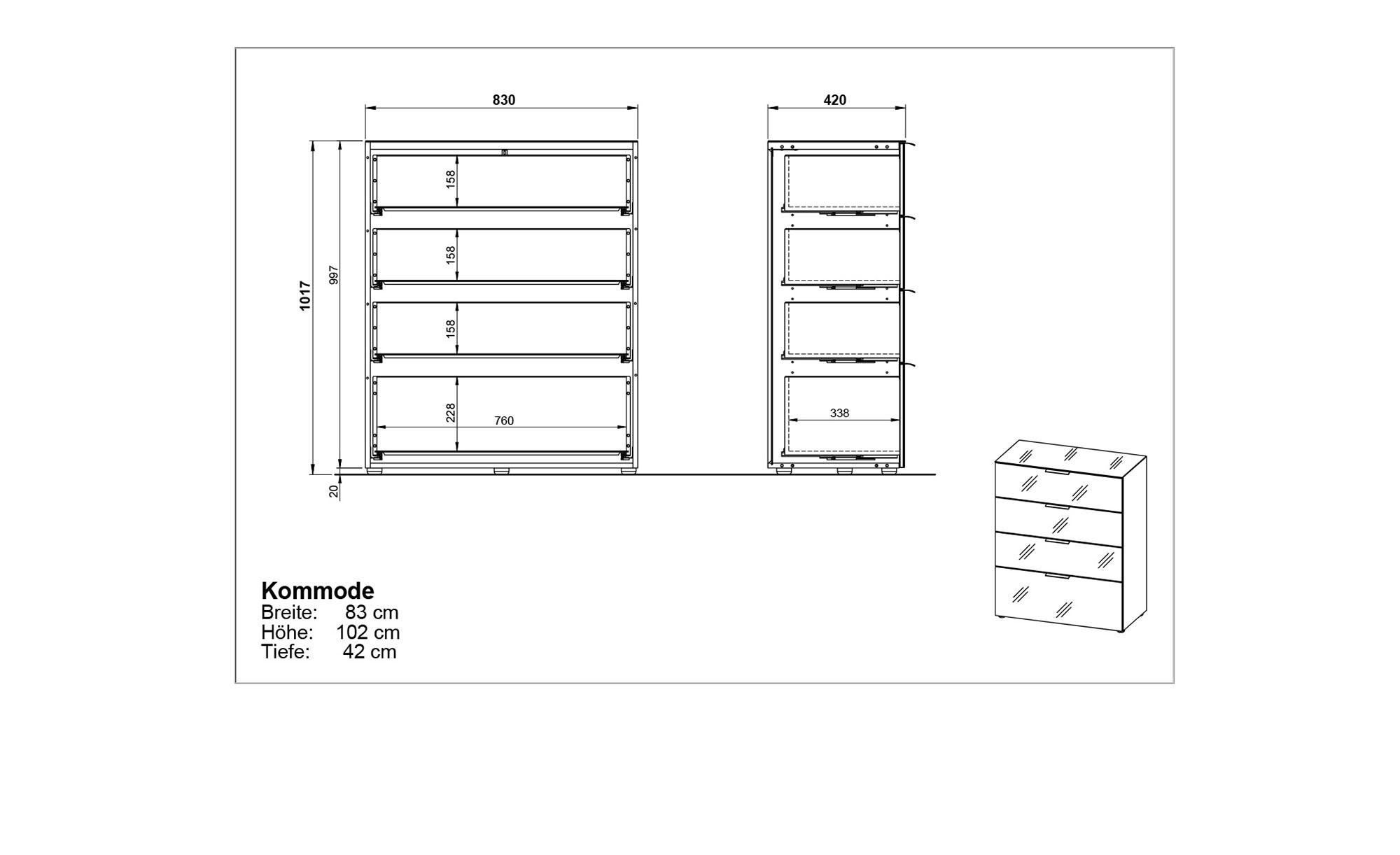 Eine gelungene Farbkombination, beste Qualität und praktischer Stauraum zeichnen die Kommode Owingen aus.